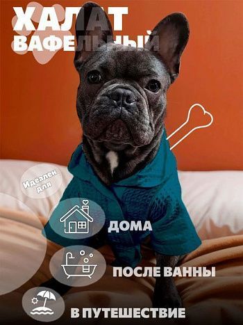 Халат для собак вафельный темно-синий