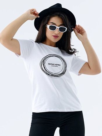 Футболка женская белая с логотипом Мотаю нервы