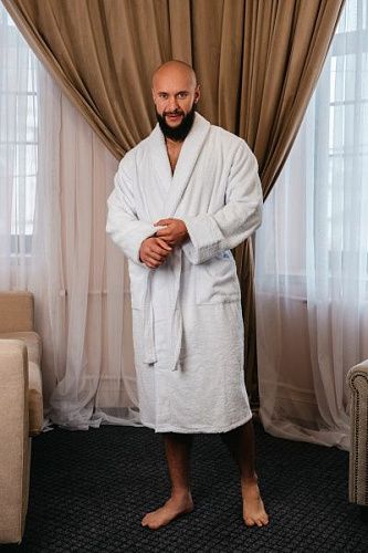 Халат махровый мужской белый шаль