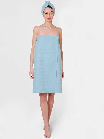 Парео вафельное голубое