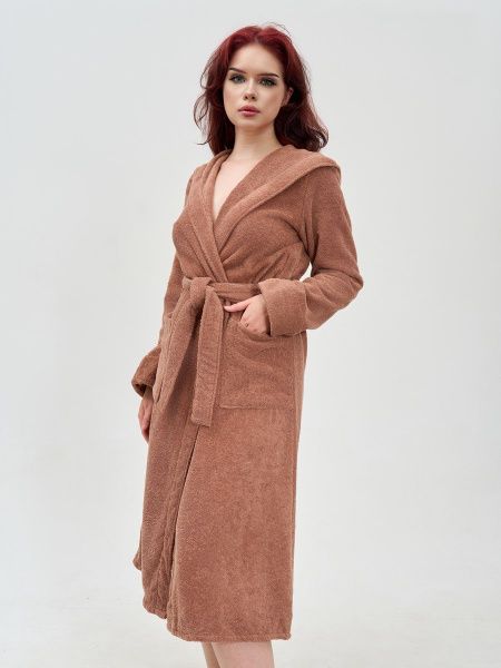 Халат махровый женский с капюшоном мокко