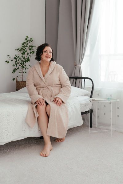 Халат махровый женский с капюшоном бордовый 60-62, 64-66