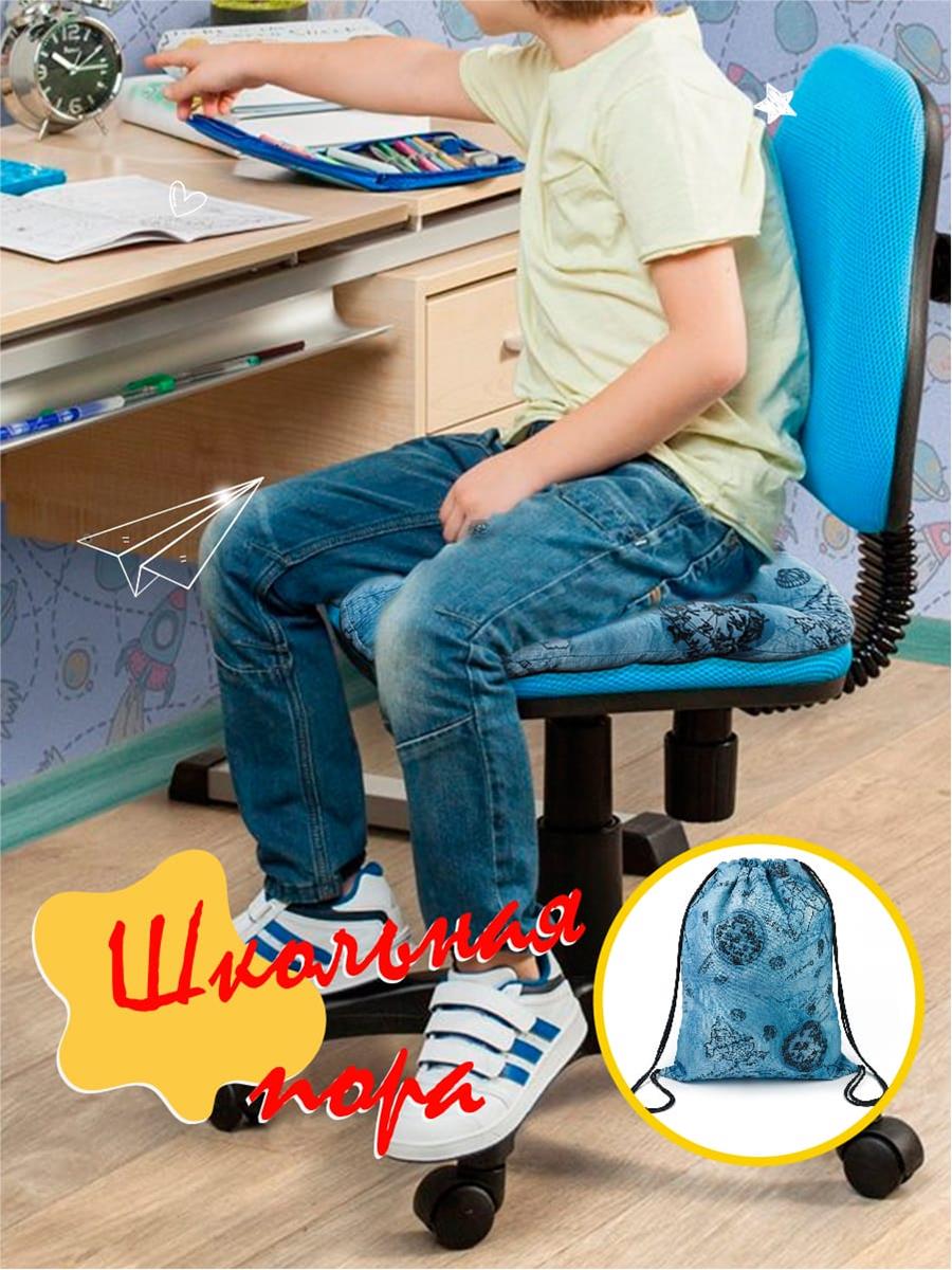 Подушка на стул в красочном дизайне создана специально для детей, преимущественно школьного возраста, так как при выполнении домашних заданий им сложно сохранять правильную осанку. Наполнитель из лузги гречихи обладает ортопедическими свойствами и придает подушке необходимую жесткость. Такая подушка за счет своей формы и особенностей наполнителя очень полезна для правильного развития опорно-двигательного аппарата, хорошего кровообращения при долгом сидении.