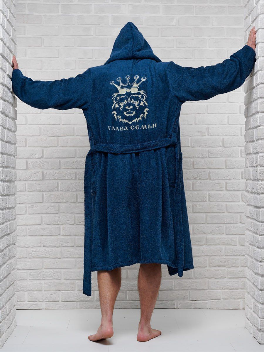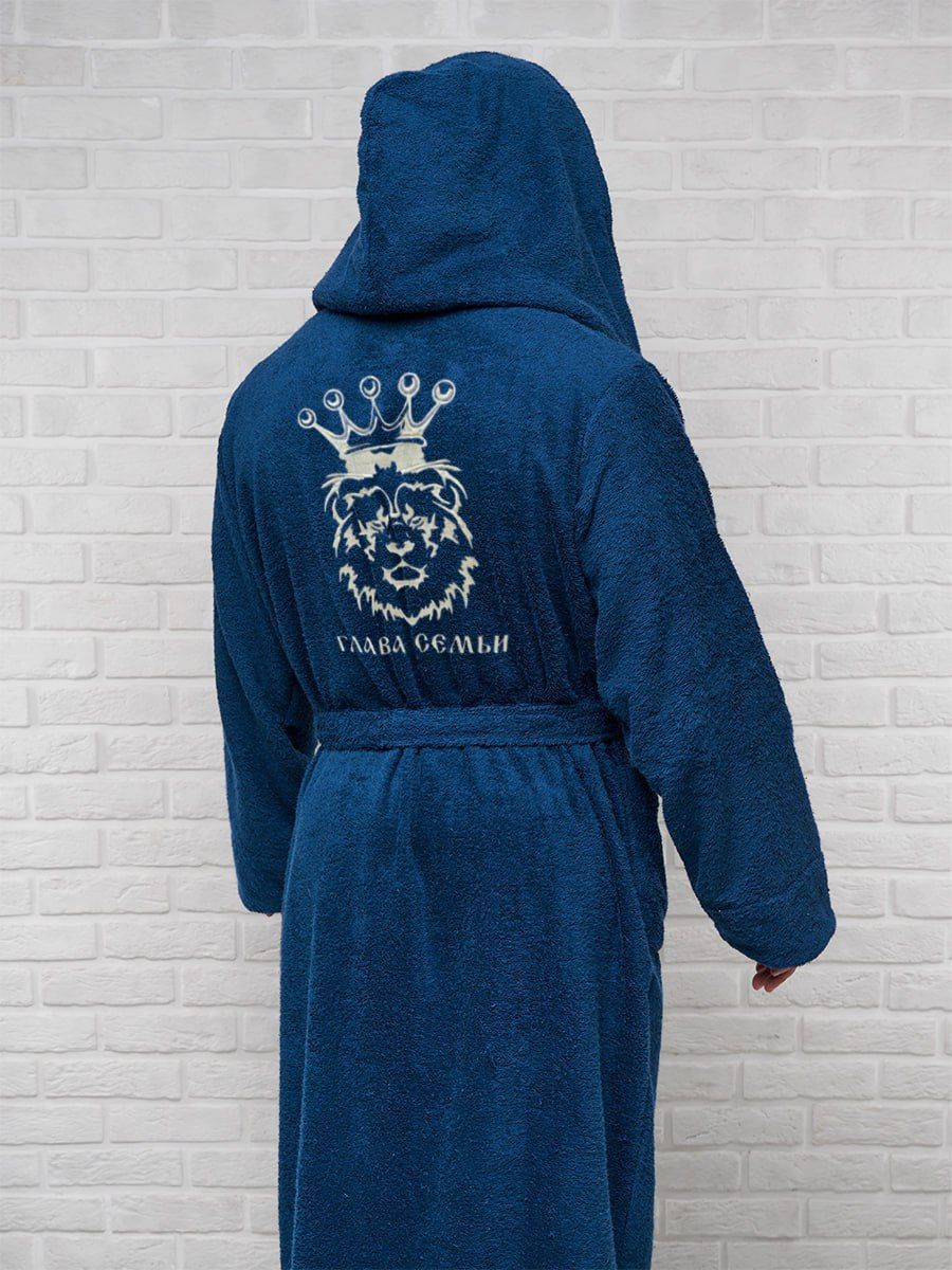 Халат махровый с капюшоном, темно-синий с вышивкой