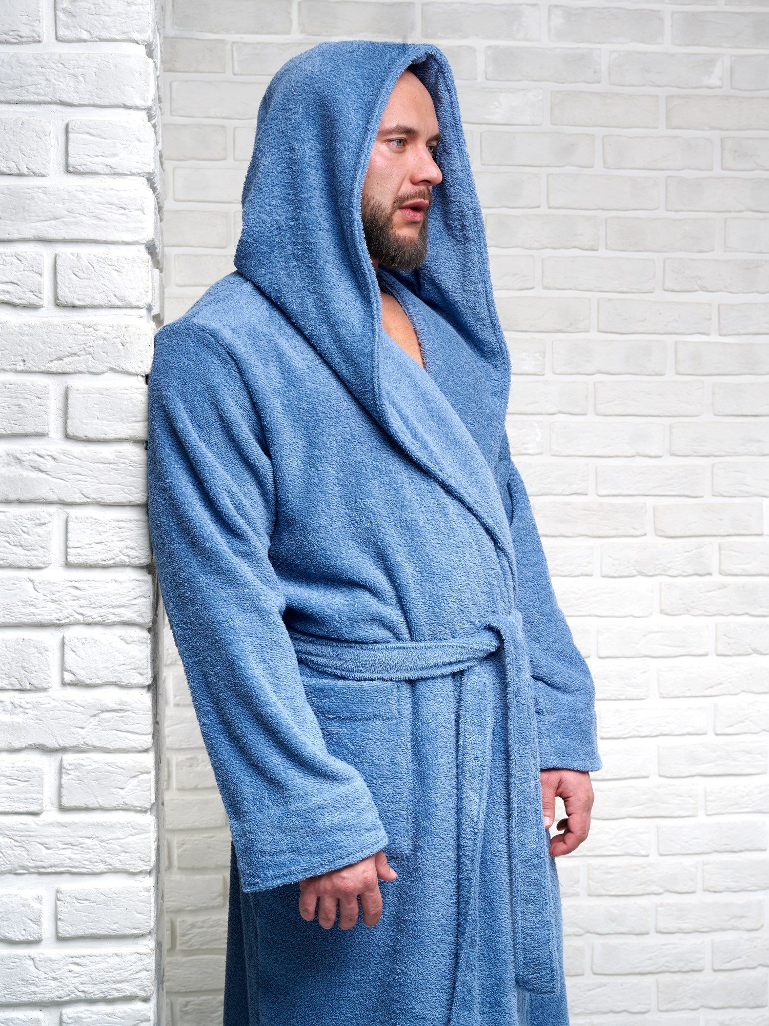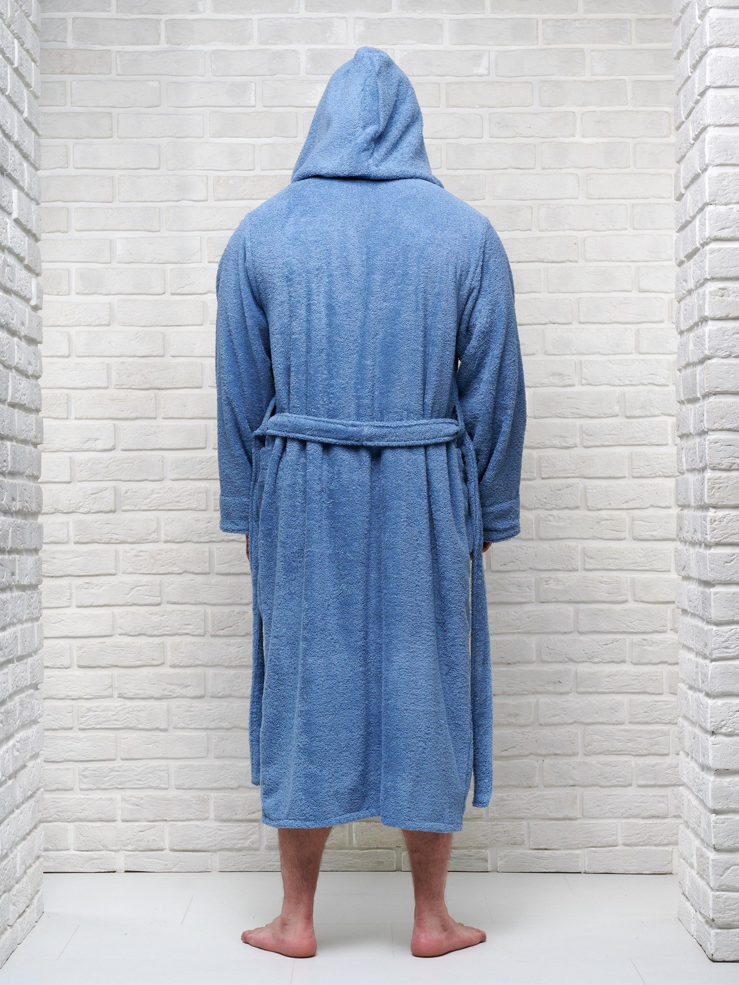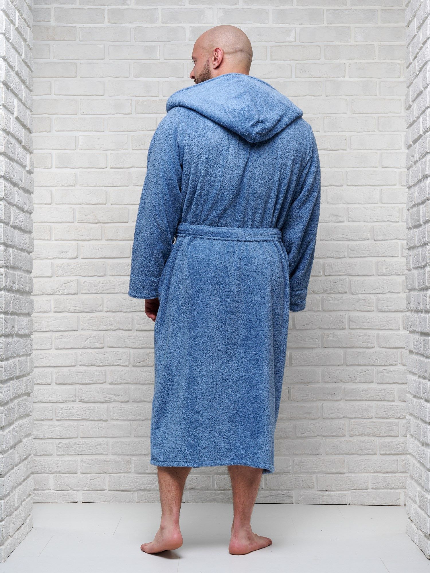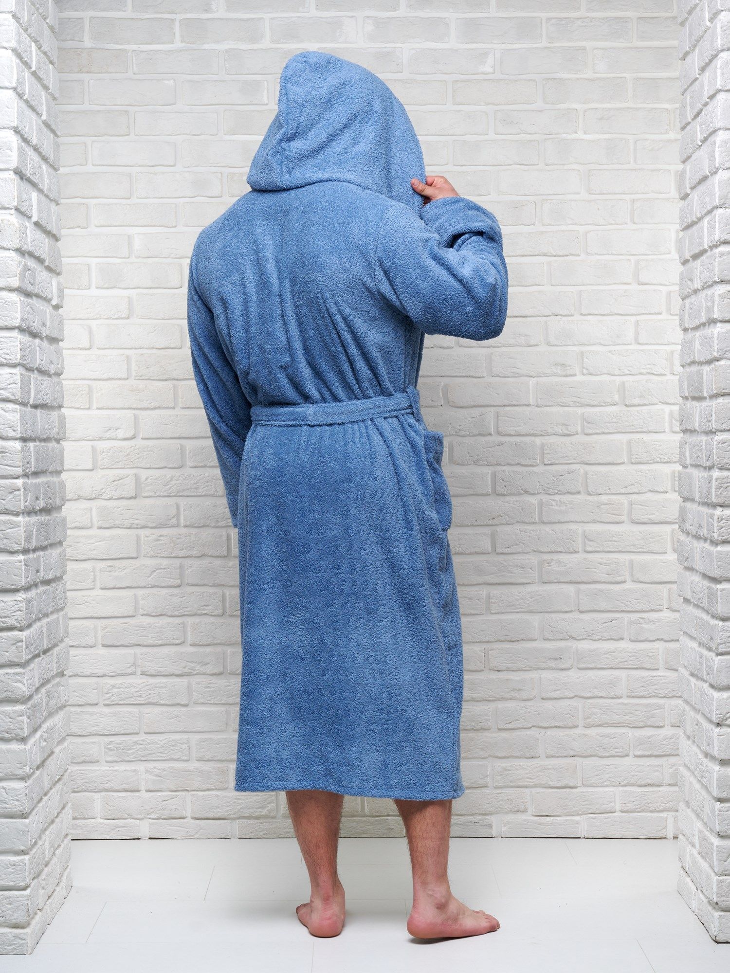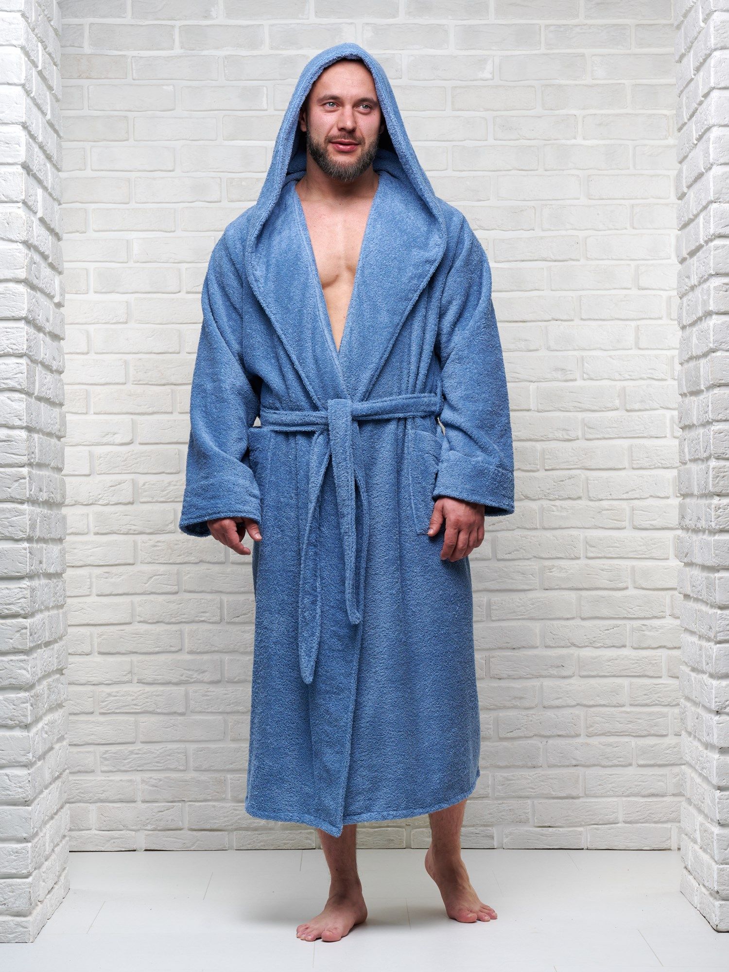 Халат мужской махровый PandaHug с капюшоном, лазурный