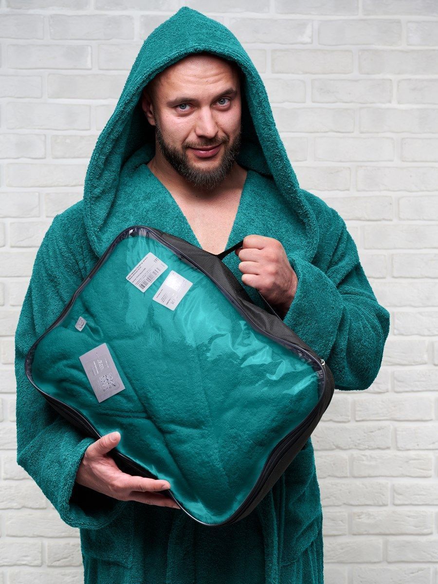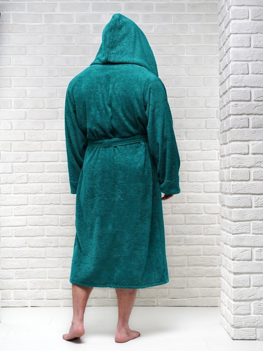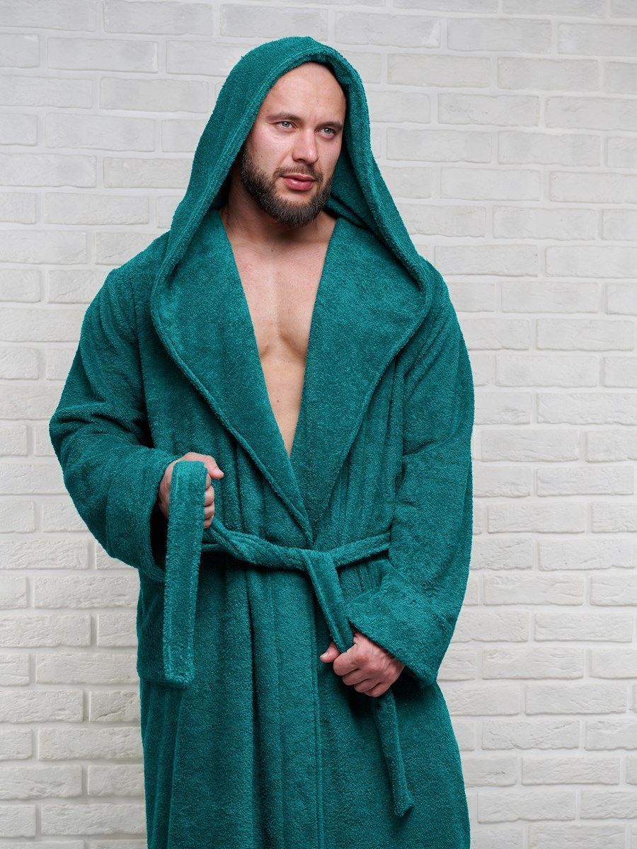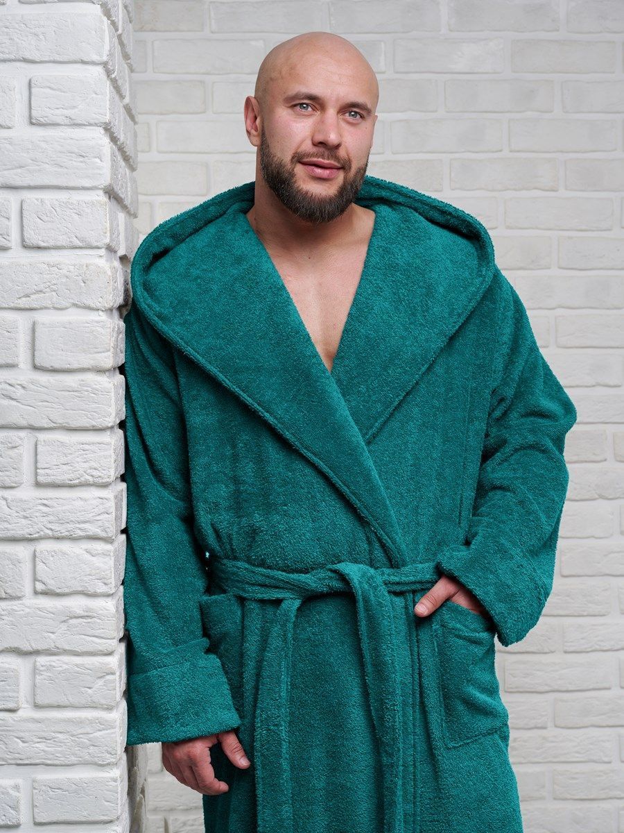 Халат мужской махровый PandaHug с капюшоном, изумруд
