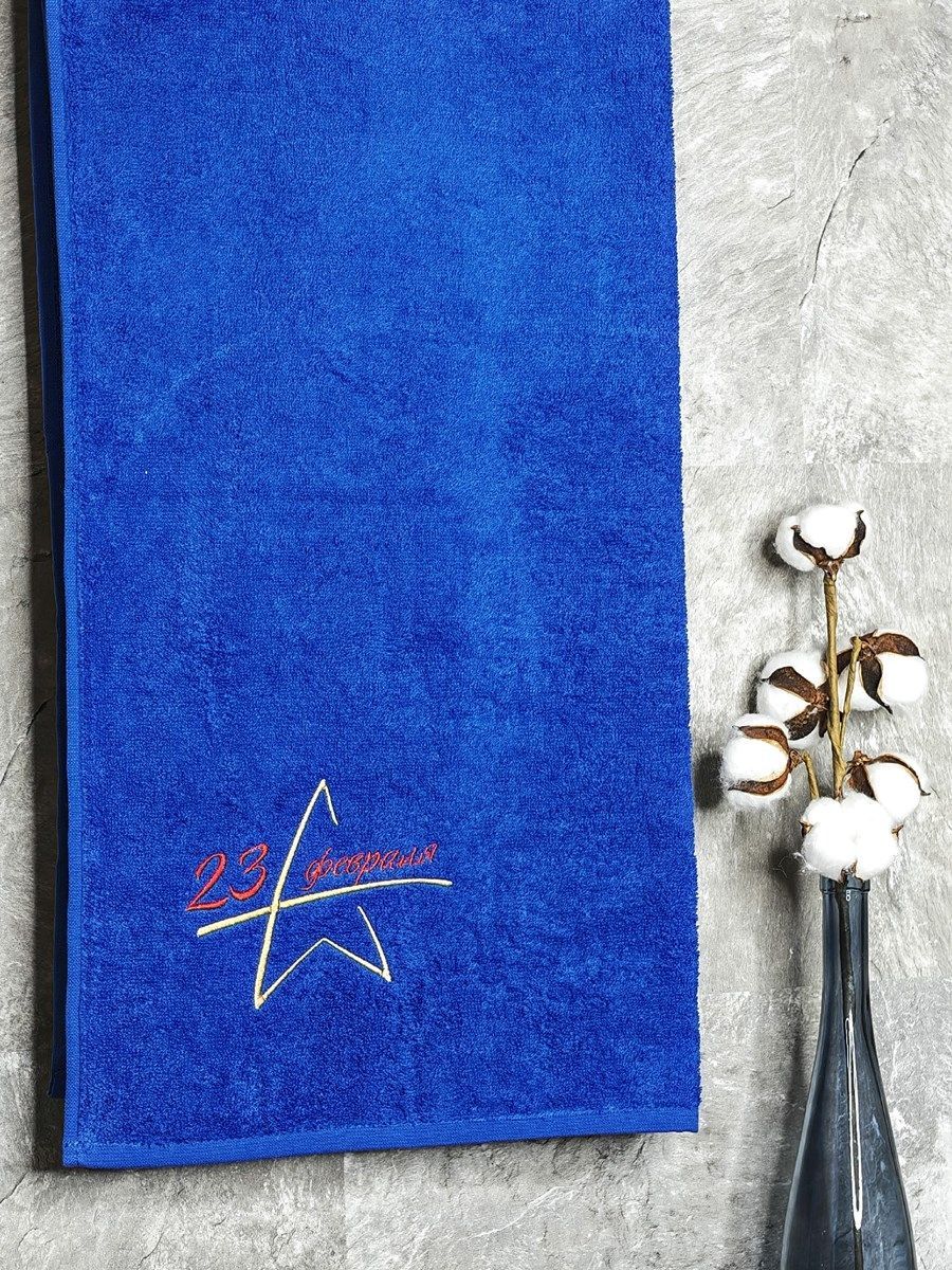 Полотенце с вышивкой 70*140 "23 февраля" васильковый