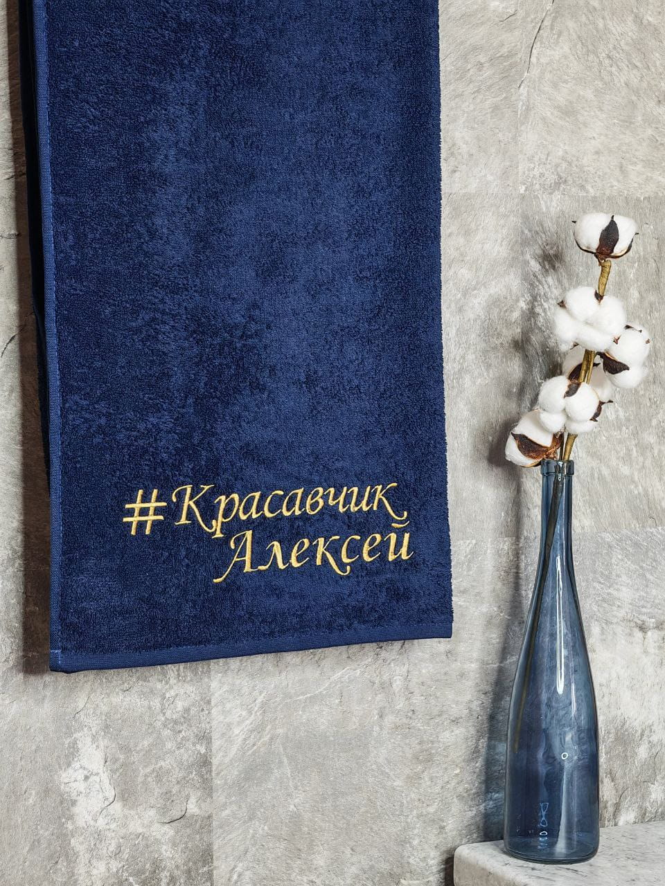 Полотенце с вышивкой 70*140 "красавчик" Алексей темно-синее