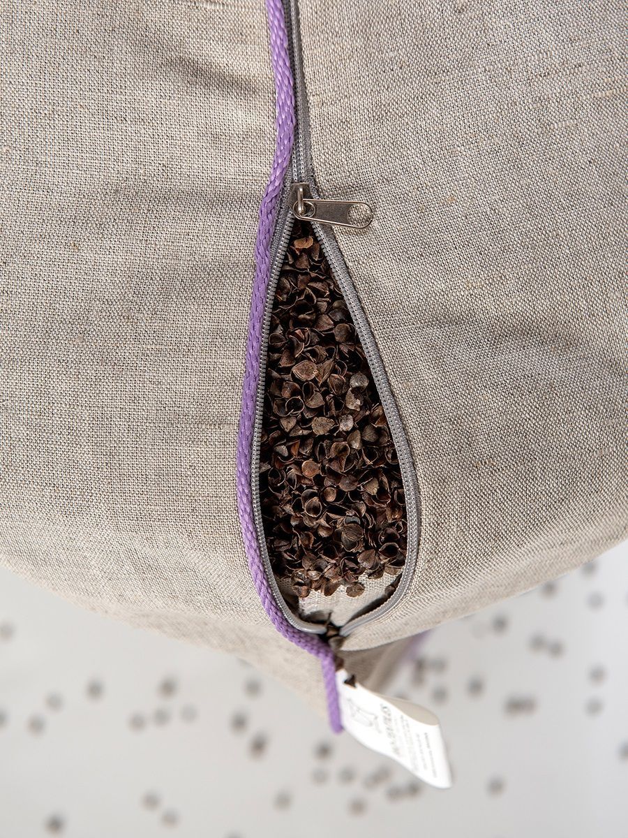 Лузга гречихи абсолютно экологична и гипоаллергенна, она позволяет воздуху свободно циркулировать внутри изделия, предотвращая потение. Сыпучесть лузги придает подушке ортопедические свойства, а ее строение способствует мягкому массажному действию, улучшающему кровообращение кожи лица и головы. Это полезно для роста волос и свежего цвета лица.