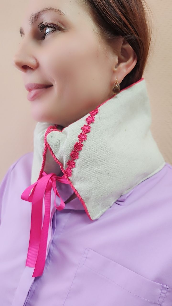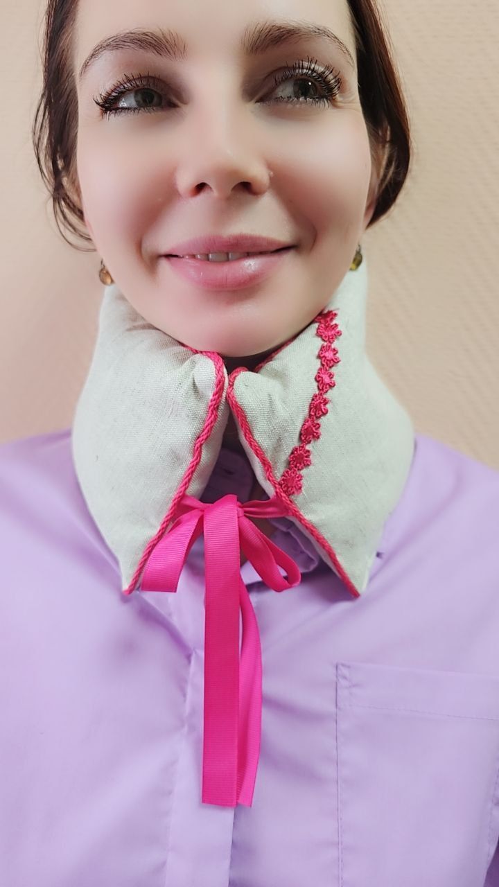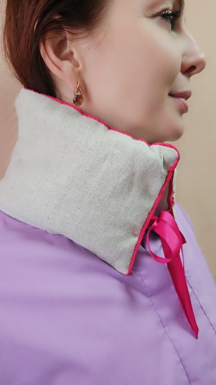Воротник «ВИШНЕВЫЕ ОБЪЯТИЯ» с вишневой косточкой используется как грелка, и хорошо подходит для прогревания шеи при симптомах остеохондроза, отлично расслабляет и избавляет от боли, а приятный аромат вишни увеличит эффект релаксации. Для нагрева подушки, ее необходимо положить в микроволновую печь на 2-3 минуты, после этого приложить к больному месту и зафиксировать с помощью тканевых завязок.