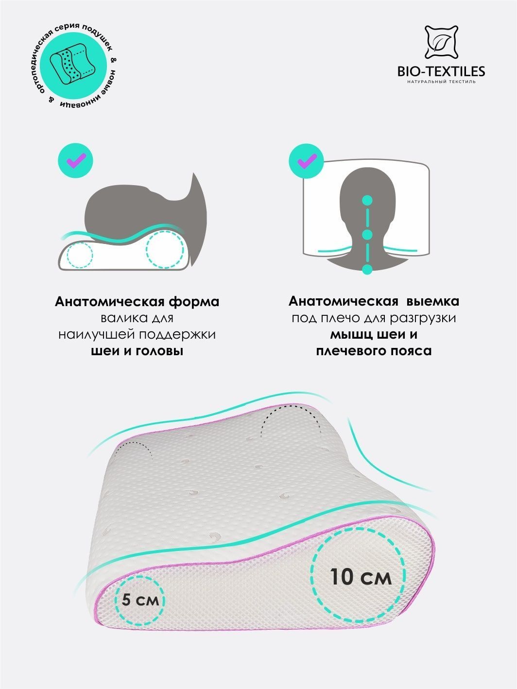 Материал подушки – вязкоэластичный пенополиуретан с эффектом «памяти» создает не только мягкость и комфорт, но и поддерживает все отделы позвоночника, особенно шею, в правильном и здоровом положении.