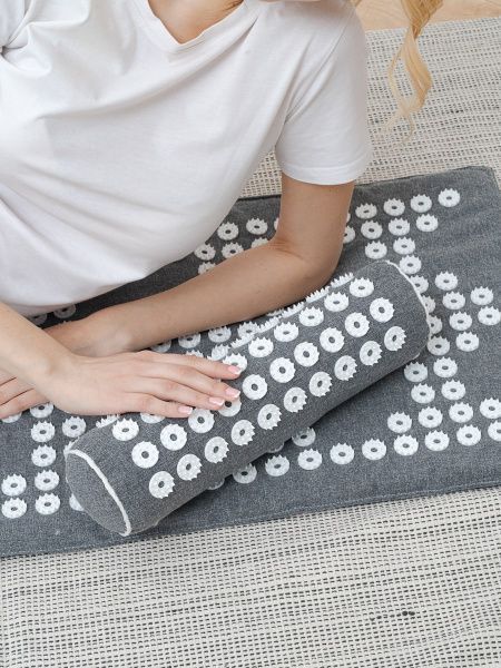 Массажный валик представляет собой валик с аппликаторами в виде остроконечных «цветков». 100 штук шипованных дисков круглой формы с пластмассовыми иглами активизируют работу нервных окончаний, воздействуя на акупунктурные точки организма. Игольчатый аппликатор оказывает общий терапевтический эффект, а также незаменим при снятии суставной, мышечной и головной болей. Воздействуя аппликатором, вы вернёте мышцам тонус и предупредите заболевания, связанные с малоподвижным образом жизни. Регулярное применение массажного валика способствует: снятию стрессового напряжения, запуску процессов восстановления в организме, расслаблению мышц, снятию боли и напряжения, нормализации сна и восстановлению нарушенного метаболизма, улучшению работы кровеносной системы и общего самочувствия, повышению тонуса и эластичности кожи, повышение жизненного тонуса, улучшение иммунитета и общего самочувствия. Валик с пышным синтетическим наполнителем делает эффект массажных аппликаторов более щадящим, оказывая оптимальное давление.