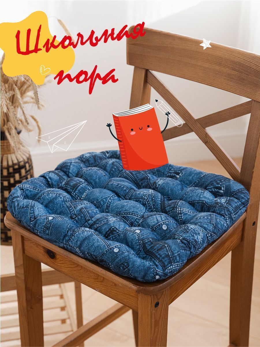 Подушка на стул "Джинсы" с лузгой гречихи 40*40