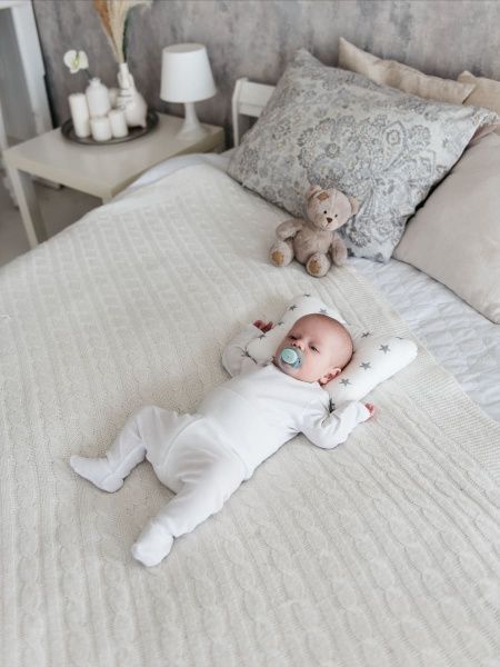 МАЛЮТКА – это удобная и полезная подушечка для самых маленьких детишек. Необычная форма в виде бабочки помогает держать головку на подушечке во время сна или бодрствования и поддерживает шею, обеспечивая правильное развитие.
