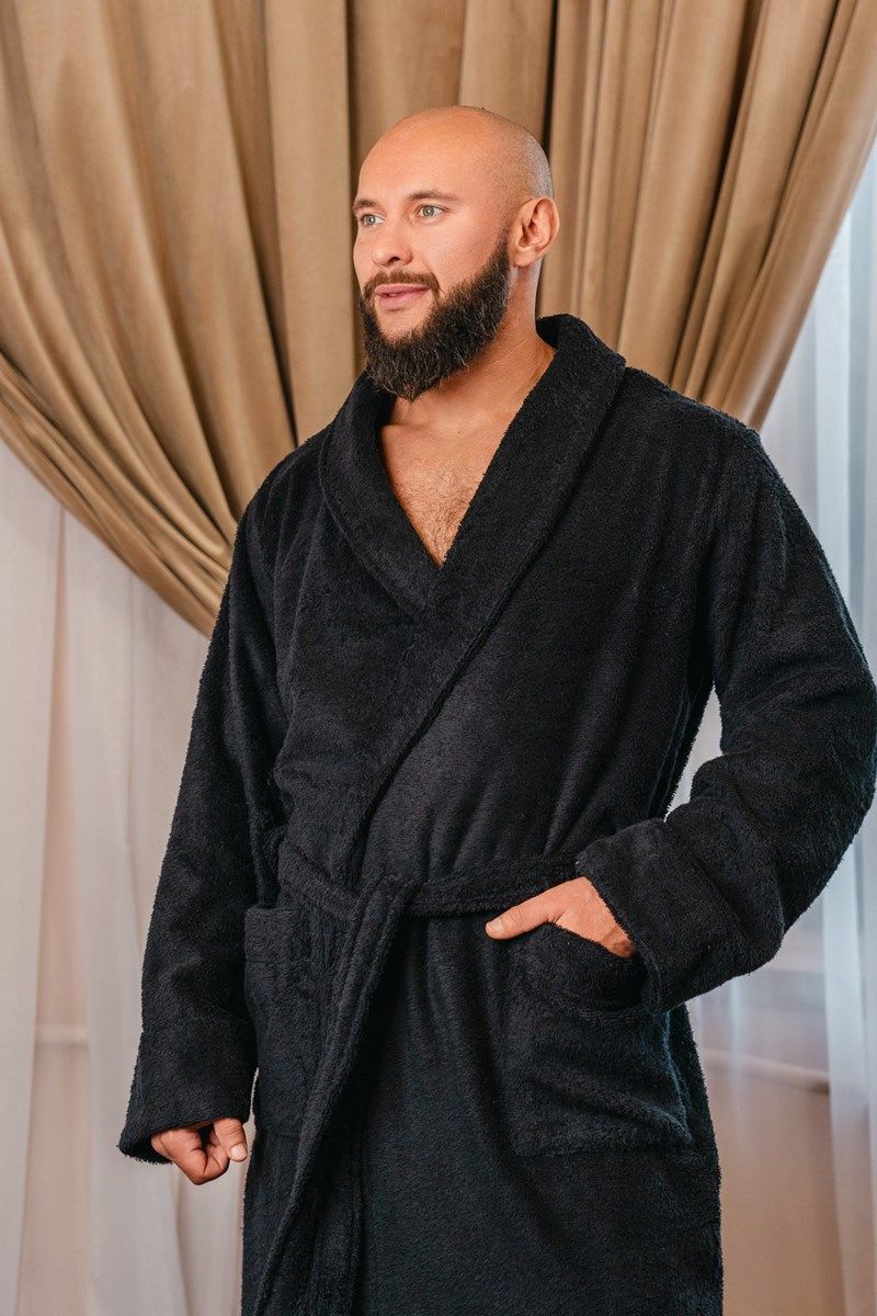 Халат махровый мужской черный