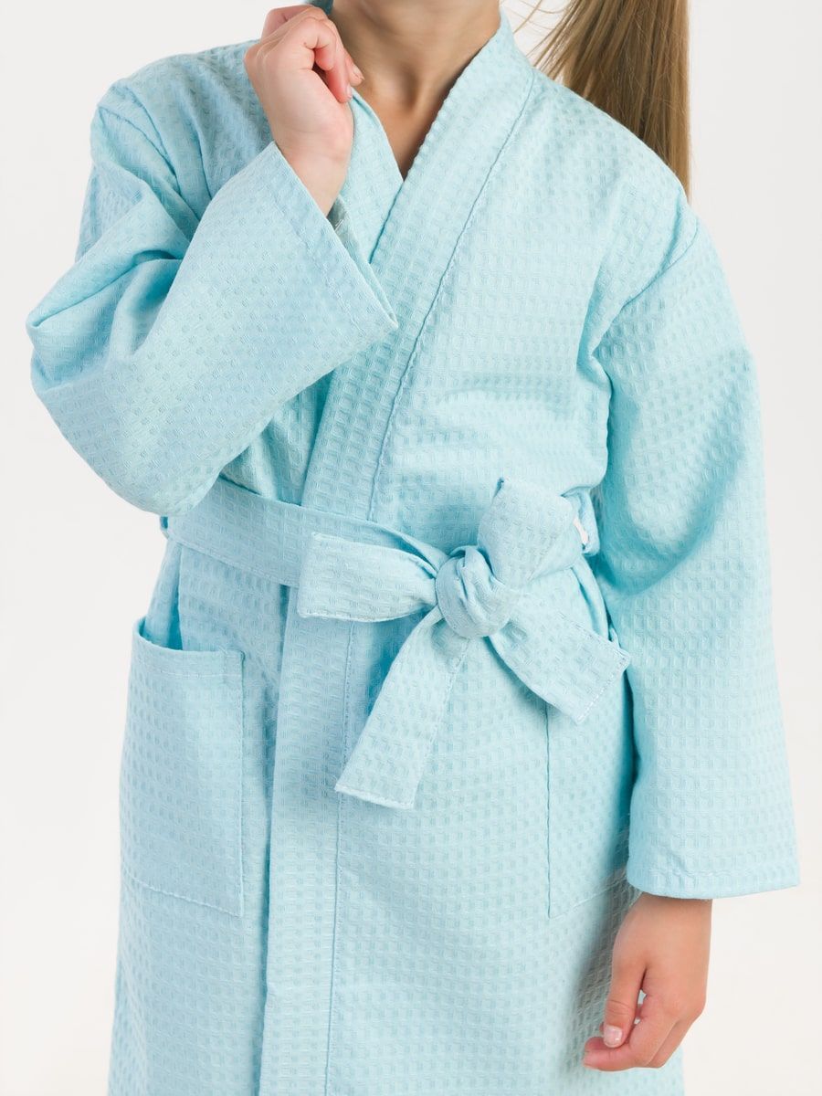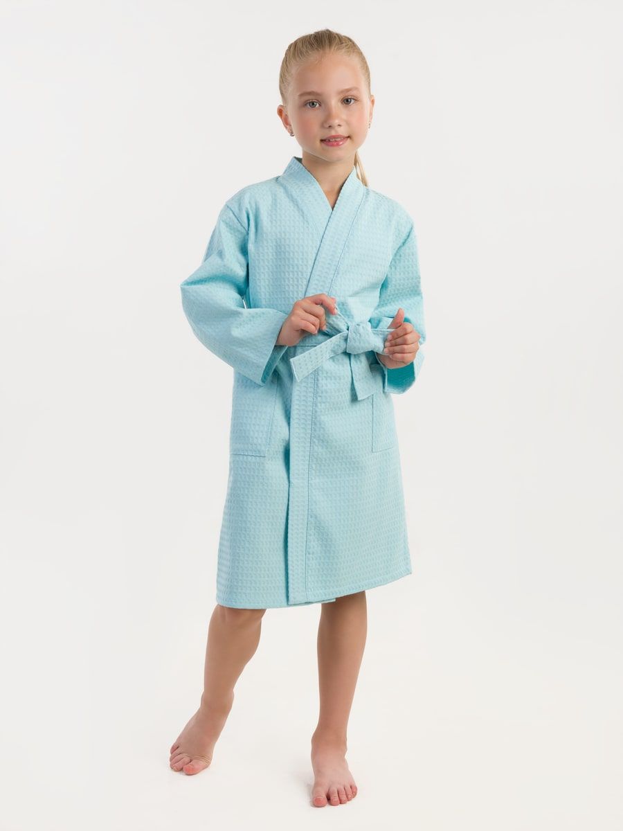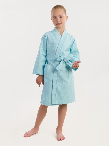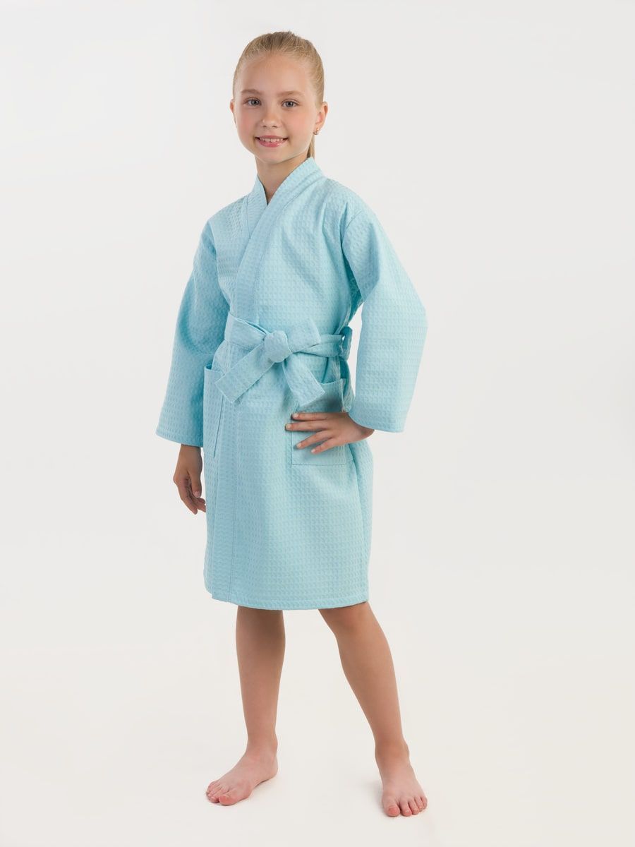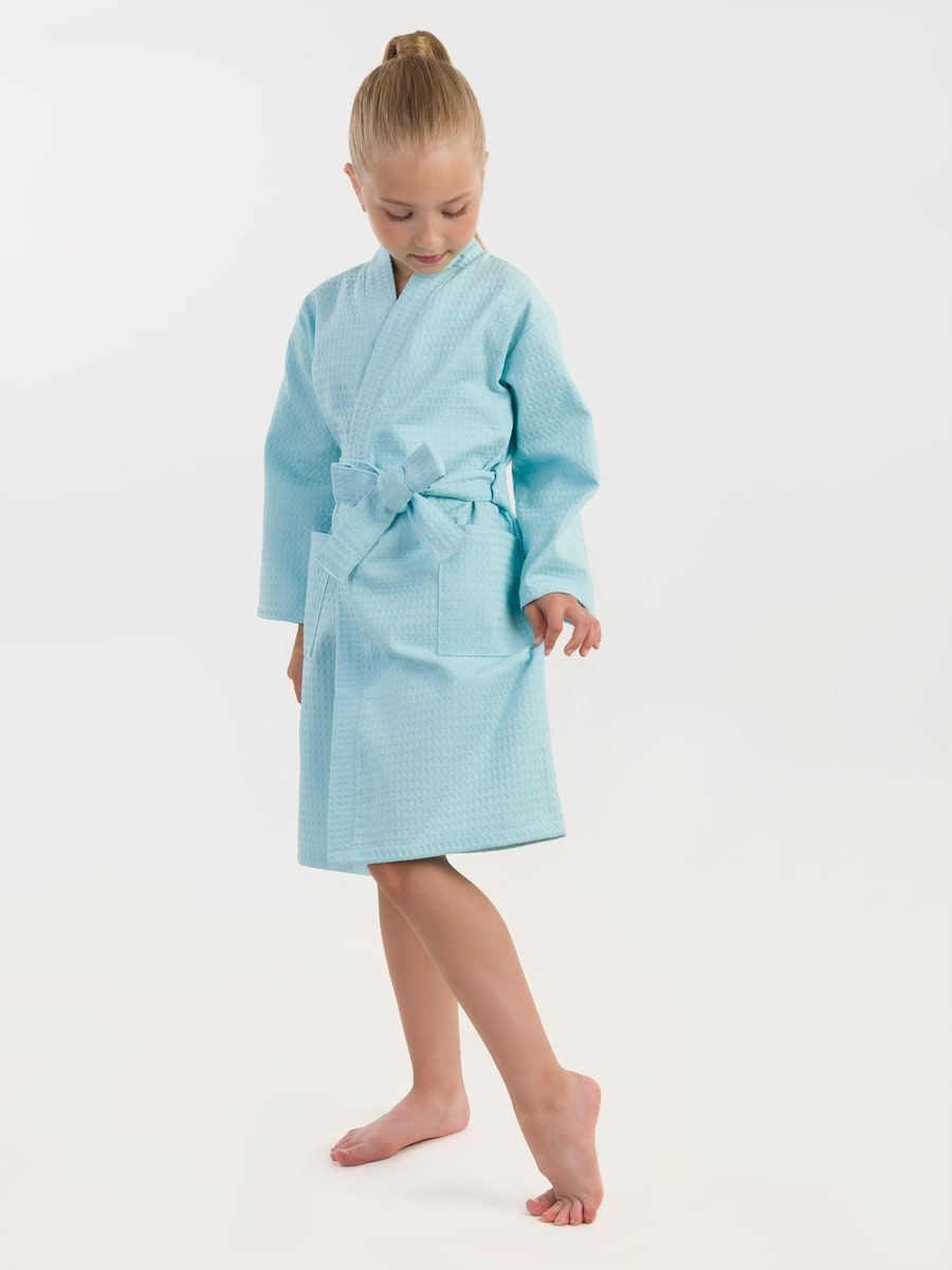 Вафельный халатик для детей, выполненный из натурального материала – 100% хлопка с карманом, удобен и универсален.  Ткань не вызывает аллергии и раздражения кожи, прекрасно пропускает воздух,  быстро впитывает влагу и так же мгновенно сохнет.   Форма халата с запахом и широким поясом позволит использовать его долгое время, несмотря на быстрый рост ребенка. Поэтому для домашнего ухода за детьми вафельный халат является одной из самых удобных и практичных вещей.   Халат из вафельной ткани легкий и практичный, благодаря натуральному составу ткани сохраняется комфортная температура тела,  идеальная для жаркого лета.   После любых водных процедур, вафельный халатик создаст приятную прохладу и быстро высушит тело, он свободный и приятный к детской коже.