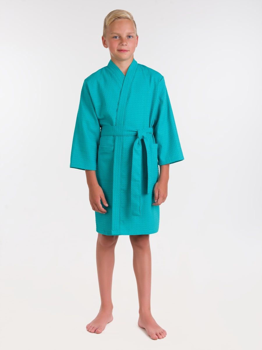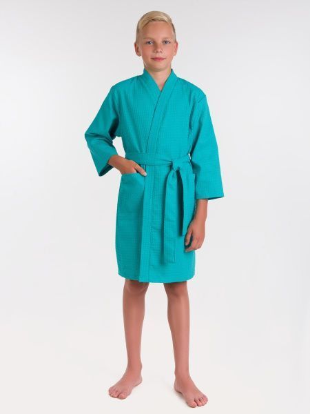 Вафельный халатик для детей, выполненный из натурального материала – 100% хлопка с карманом, удобен и универсален.  Ткань не вызывает аллергии и раздражения кожи, прекрасно пропускает воздух,  быстро впитывает влагу и так же мгновенно сохнет.   Форма халата с запахом и широким поясом позволит использовать его долгое время, несмотря на быстрый рост ребенка. Поэтому для домашнего ухода за детьми вафельный халат является одной из самых удобных и практичных вещей.   Халат из вафельной ткани легкий и практичный, благодаря натуральному составу ткани сохраняется комфортная температура тела,  идеальная для жаркого лета.   После любых водных процедур, вафельный халатик создаст приятную прохладу и быстро высушит тело, он свободный и приятный к детской коже.