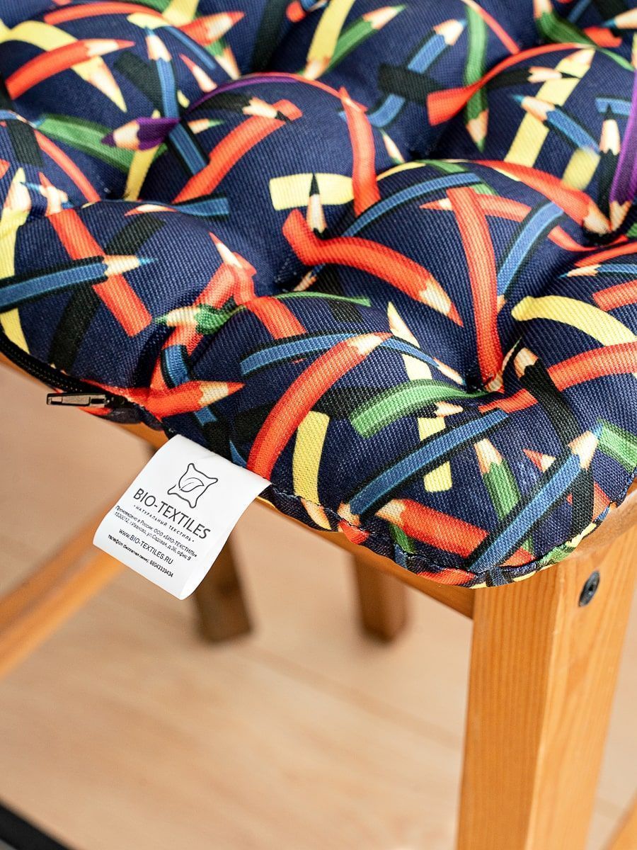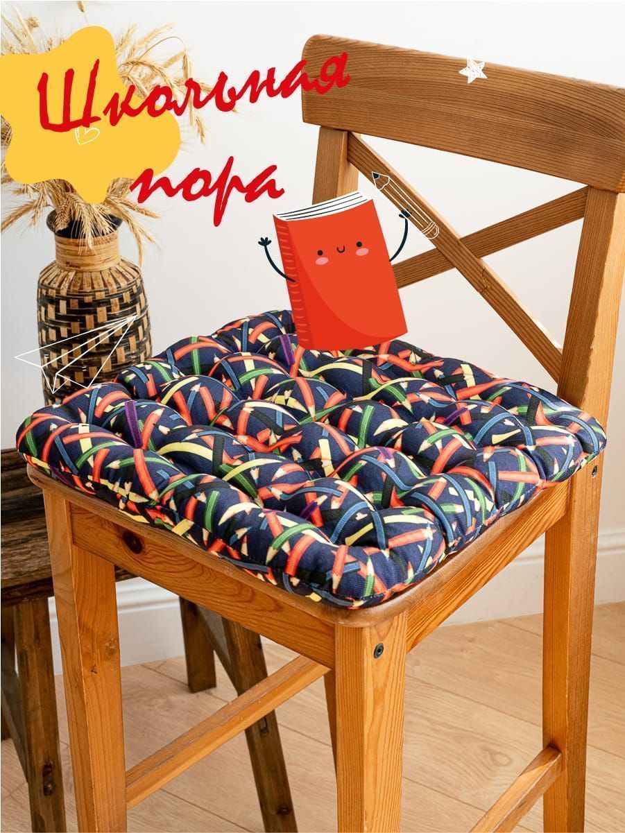 Подушка на стул в красочном дизайне создана специально для детей, преимущественно школьного возраста, так как при выполнении домашних заданий им сложно сохранять правильную осанку. Наполнитель из лузги гречихи обладает ортопедическими свойствами и придает подушке необходимую жесткость. Такая подушка за счет своей формы и особенностей наполнителя очень полезна для правильного развития опорно-двигательного аппарата, хорошего кровообращения при долгом сидении.