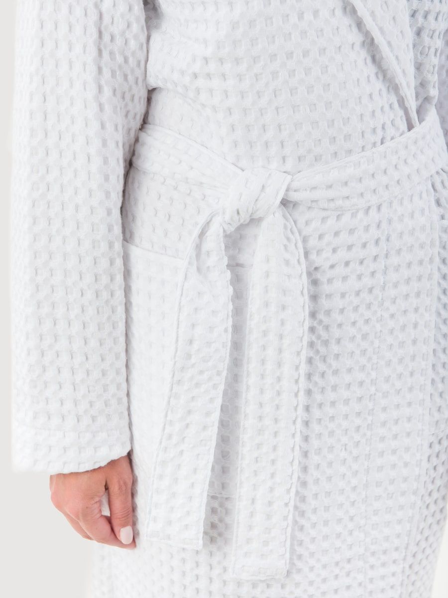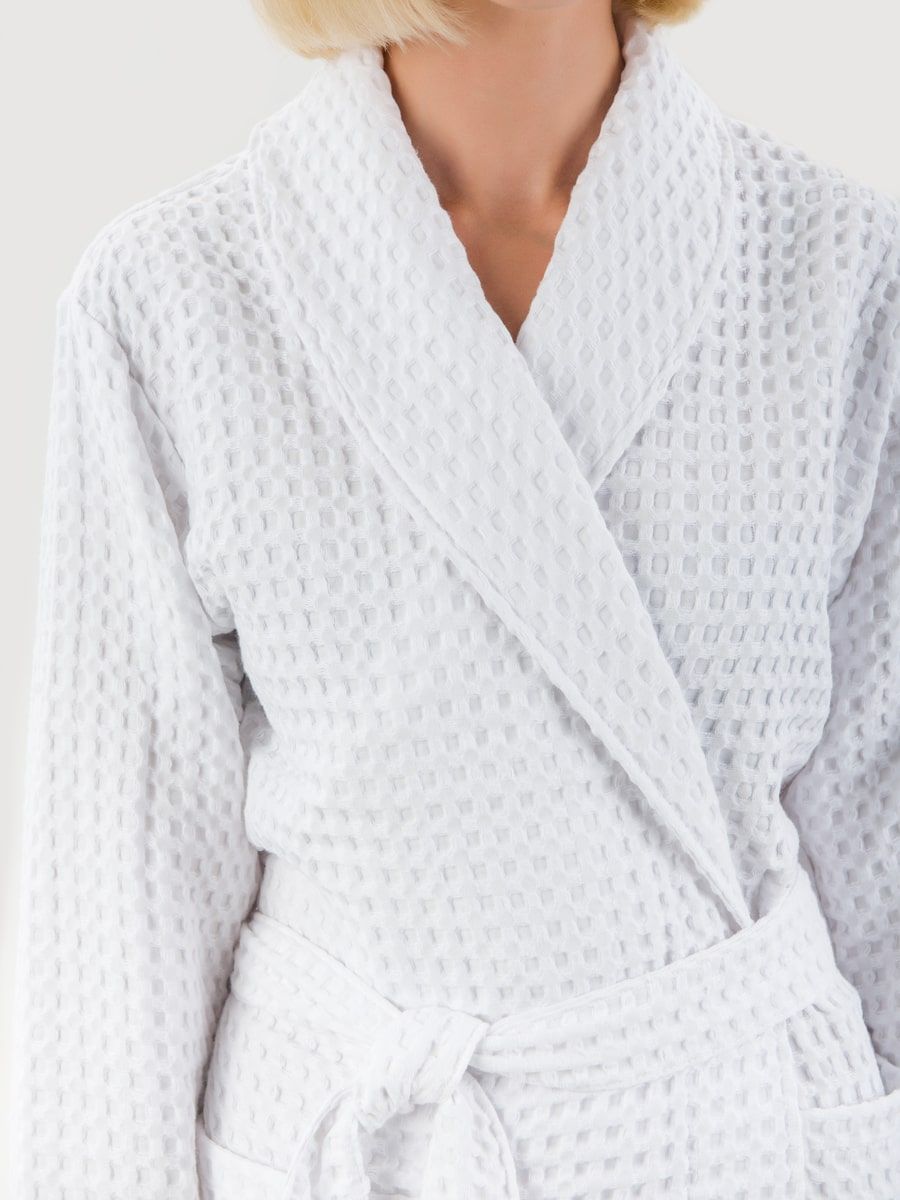 Вафельный халат «Комфорт» в крупную клетку с карманами и пояском. Благодаря высочайшему качеству ткани, халат не растягивается, очень прочен и обеспечивает максимум комфорта.