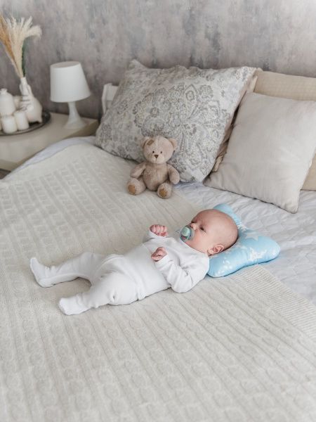 МАЛЮТКА – это удобная и полезная подушечка для самых маленьких детишек. Необычная форма в виде бабочки помогает держать головку на подушечке во время сна или бодрствования и поддерживает шею, обеспечивая правильное развитие.