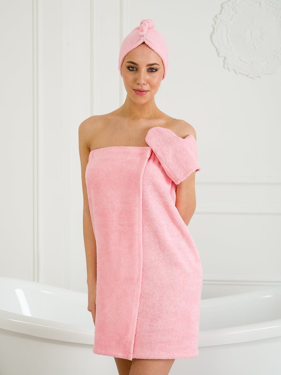 Стандартный комплект для бани может включать в себя также тюрбан для сушки волос, полотенца, варежку, но самым важным и нужным является полотенце-парео.
