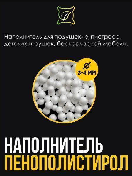 Безопасный и гипоаллергенный наполнитель в виде мелких шариков имеет суперлёгкий вес, мягкий массажный эффект, не деформируется при сдавливании и не боится влаги. Изделия с ним, такие как кресло-подушка, лёгкие и воздушные, быстро меняют форму при нажатии и выдерживают тяжелый вес.