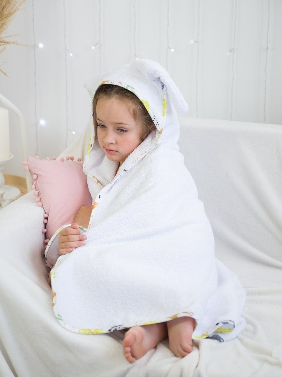 Полотенце уголок выполнено из высококачественного махрового полотна 100% хлопок. Полотенце отлично впитывает влагу и быстро сохнет.
