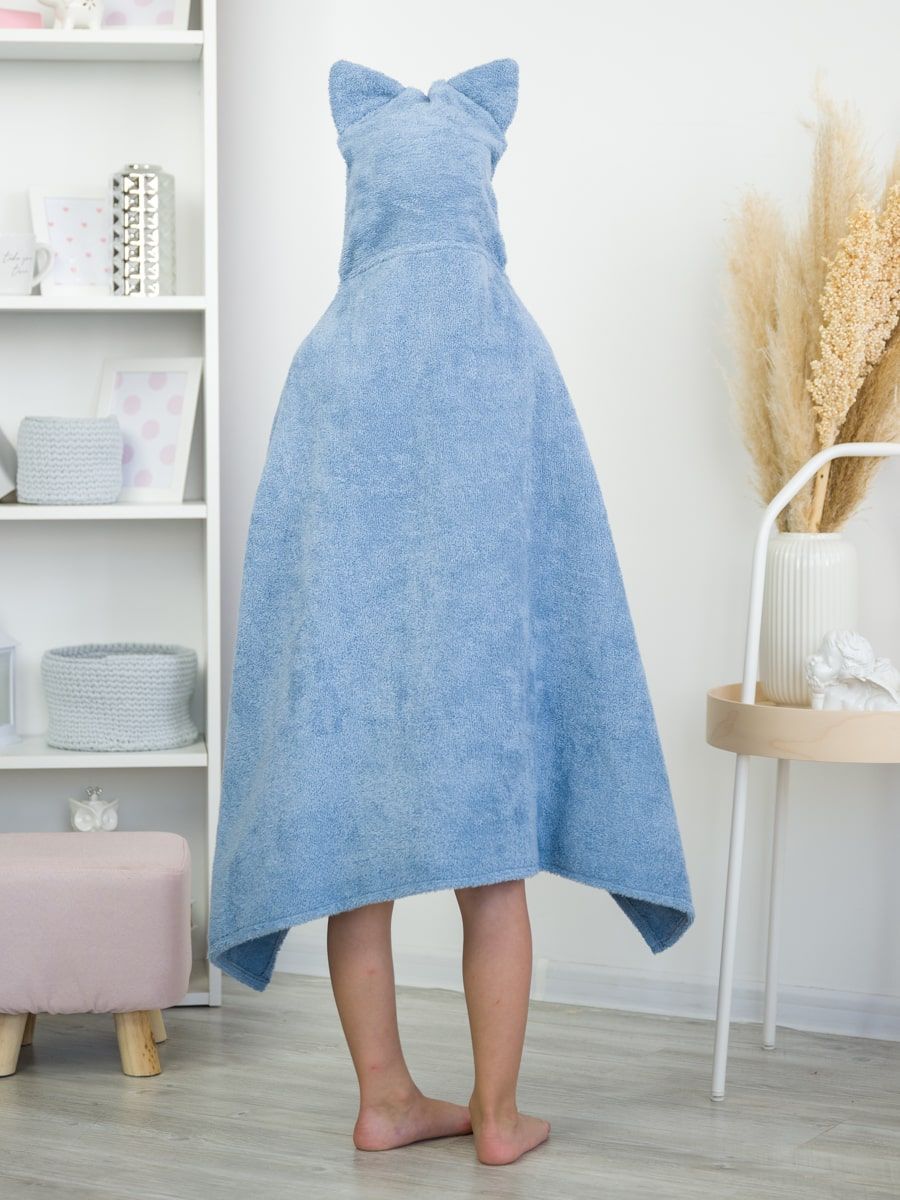 Большое полотенце с ушами кота станет незаменимым аксессуаром после купания как для новорождённых малышей, так и для подросших девочек ростом до 120 см.