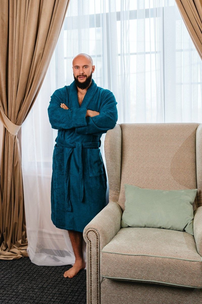 Стильный и удобный махровый халат для мужчин обеспечит комфорт и практичность. Качественная махровая ткань выполнена из натурального хлопка в Узбекистане. Благодаря крою халата, он очень удобен, свободно «сидит».