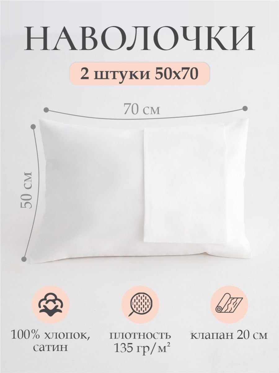 Набор из двух наволочек из коллекции SATIN. Ткань сатин премиум, 100% хлопок с повышенной линейной плотностью 200 ТС (количество нитей на дюйм в полотне). Наволочка с клапаном подходит на стандартную подушку 40х60 и 50х70 для сна, а также для ортопедической с эффектом памяти и анатомической подушек.