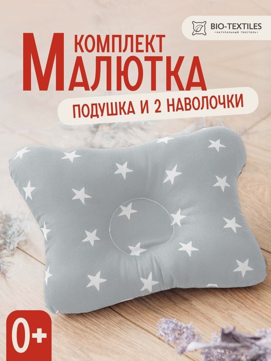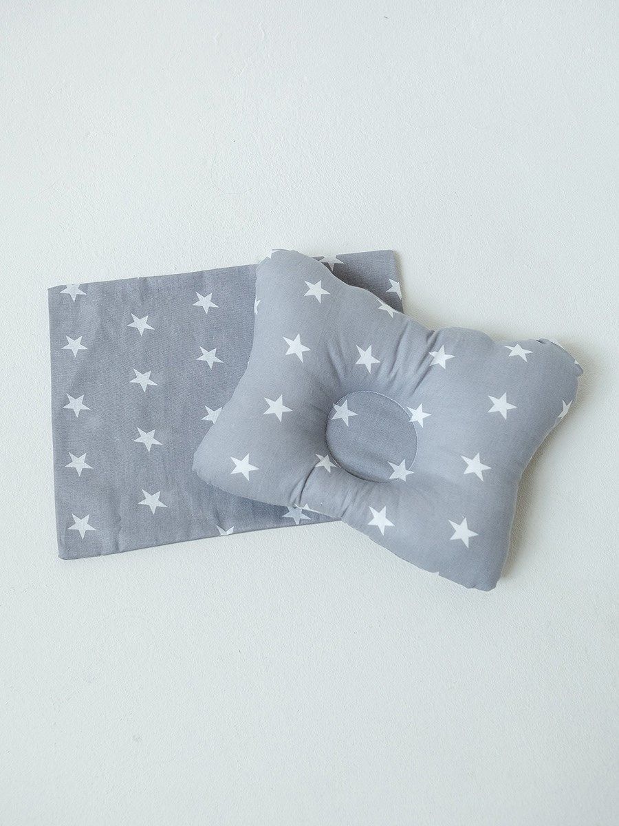 Комплект подушка "МАЛЮТКА" + 2 наволочки звездочки белые на сером