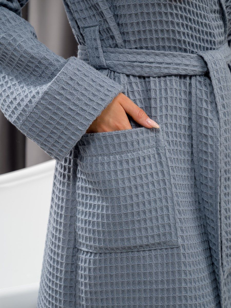 Вафельный халат в крупную клетку с карманами и пояском. Благодаря высочайшему качеству ткани, халат не растягивается, очень прочен и обеспечивает максимум комфорта.