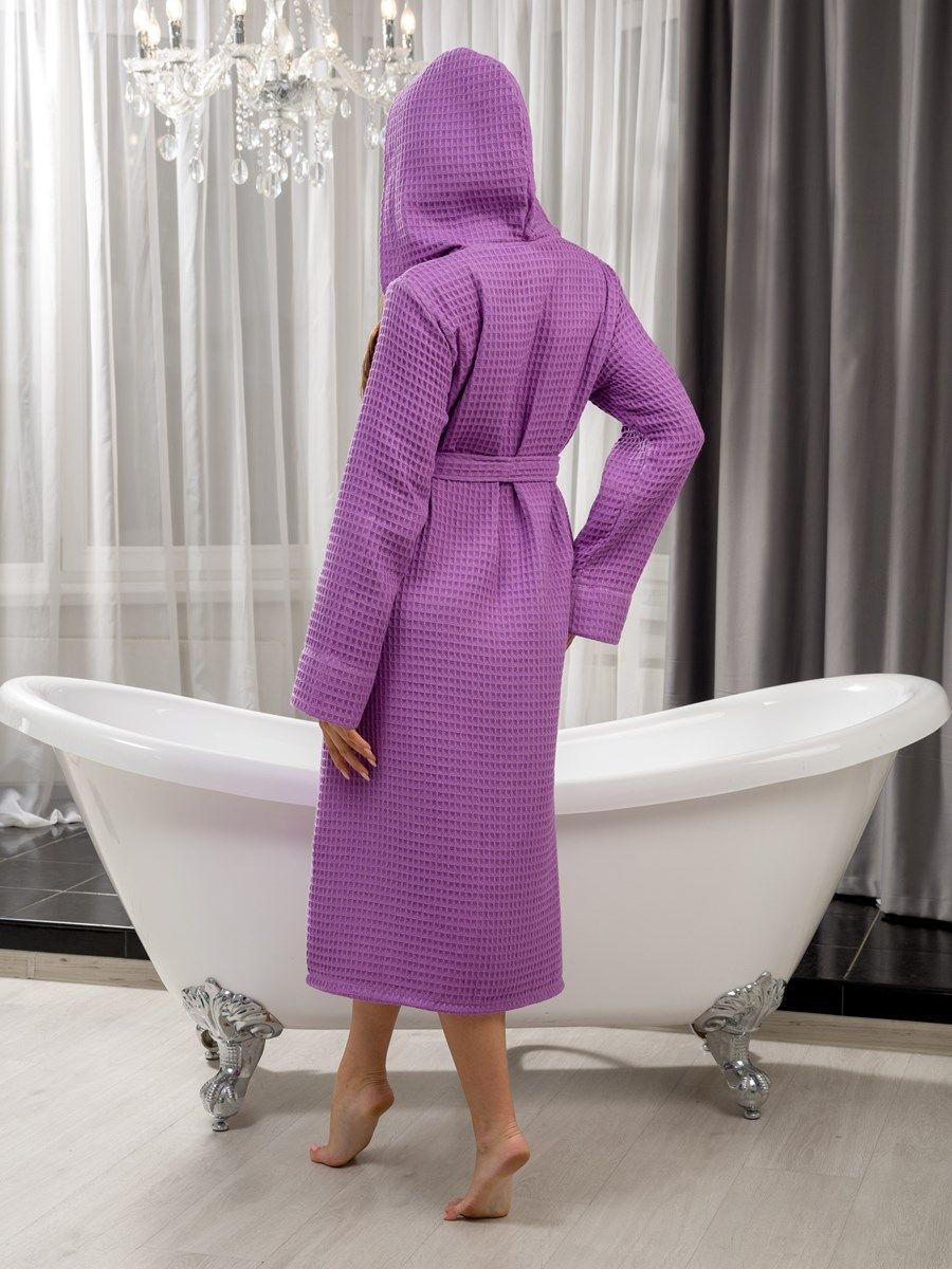 Халат женский вафельный PandaHug Оrnella сиреневый с капюшоном