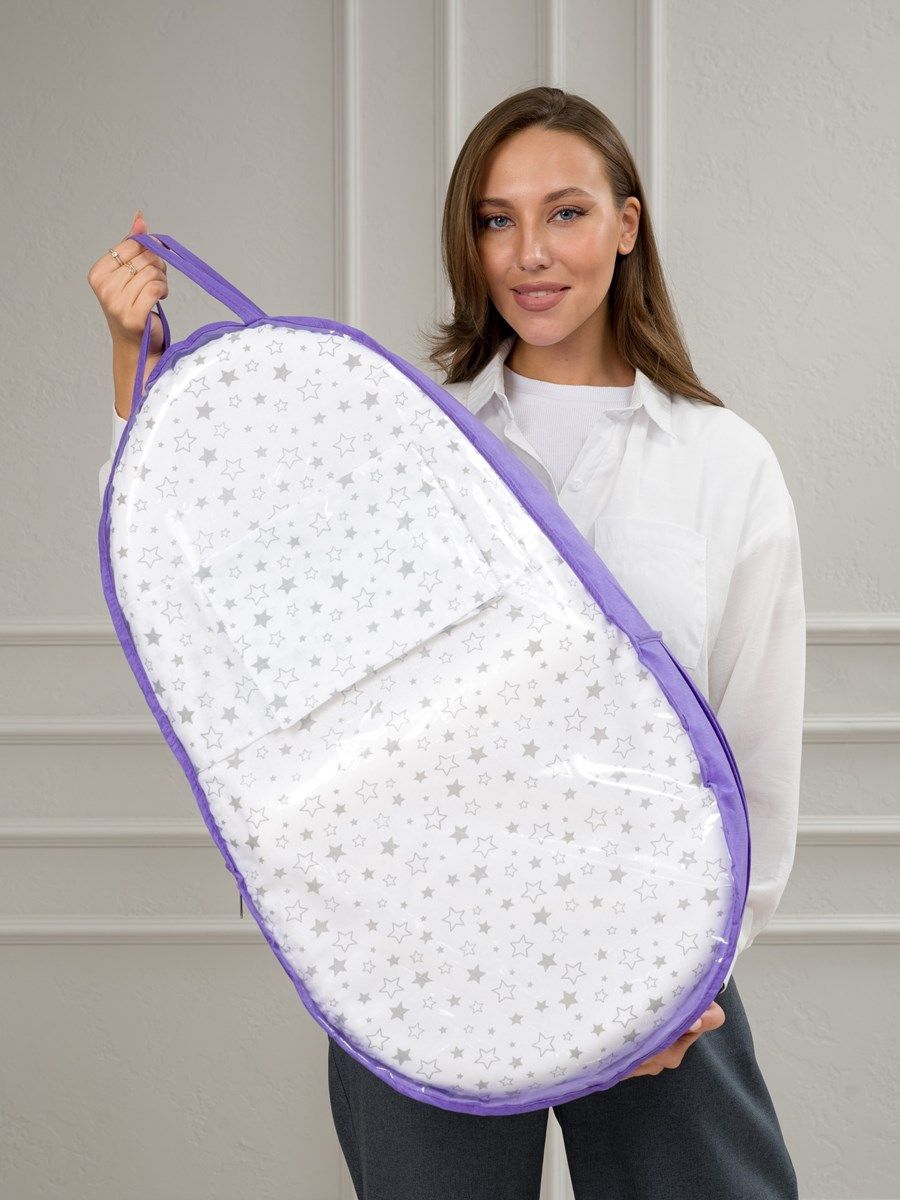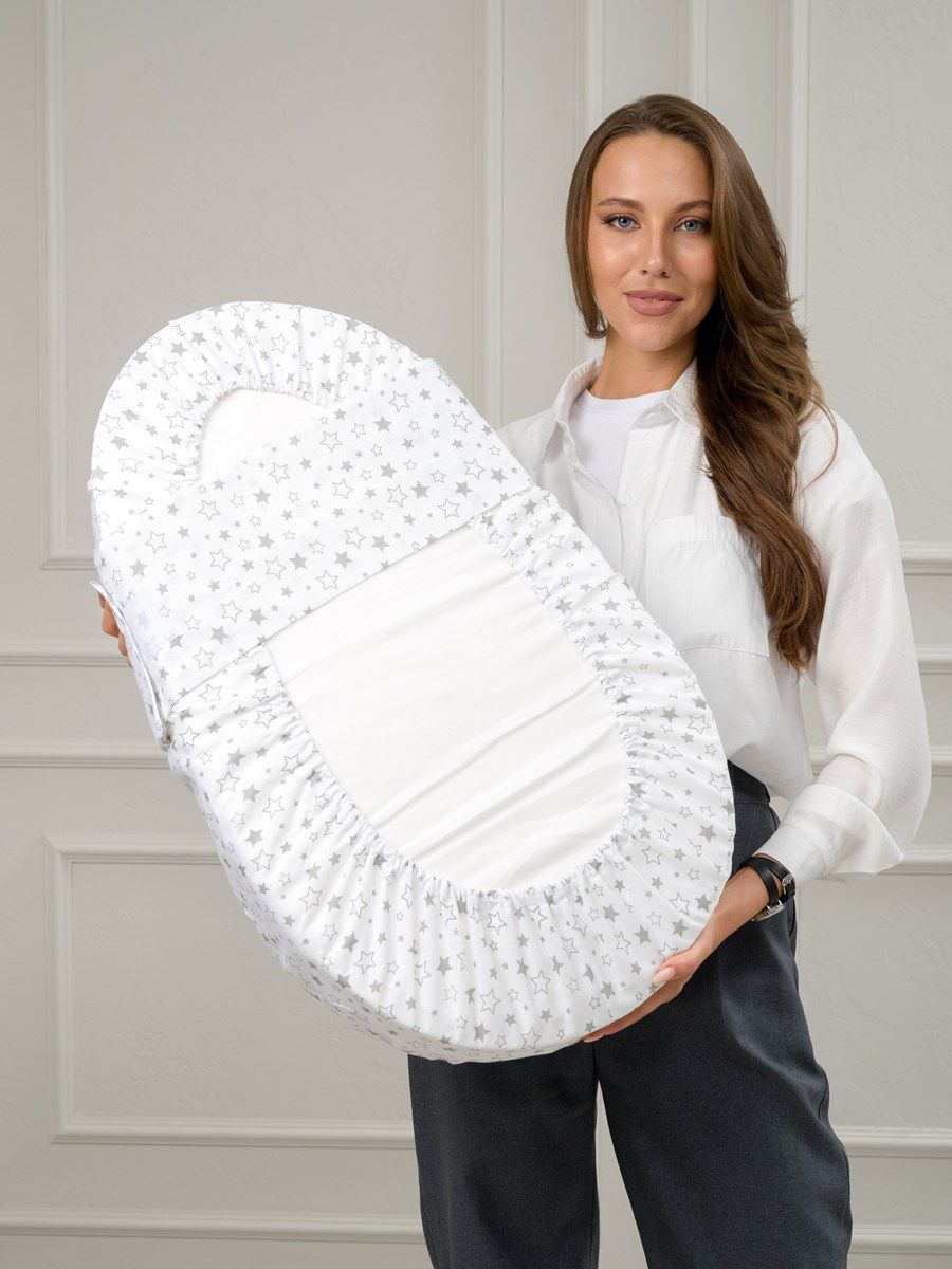 Удобная люлька создана для новорожденных и удобна тем, что её можно расположить как в  кроватке, так и на диване. Инновационный материал  с «эффектом памяти» мягкий и упругий, поэтому бережно поддержит малыша. Анатомическая форма люльки выполнена с учетом особенностей новорожденного, наличие  упругих бортиков обеспечит те самые ощущения ,как у мамы в животике, благодаря которым малыш  будет чувствовать  себя особенно спокойно , а его сон станет крепче.  В комплект входит валик под ноги, который поможет создать «привычное положение», чтобы сон малыша был спокойнее, а широкий пояс на липучке поможет зафиксировать малыша для безопасности. Верхняя поверхность  внутреннего чехла выполнена из мулетона - махровой ткани с водонепроницаемой мембраной, которая надежно защитит кокон от влаги.  Съёмная бязевая наволочка из 100% хлопка мягкая и шелковистая, ее эластичность создаст максимально комфортные ощущения, не сковывая движений малыша.