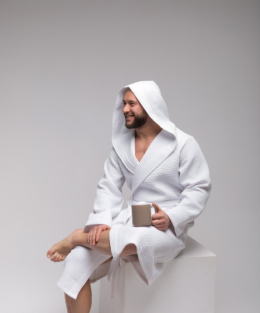 Благодаря своей легкости, практичности и удобного использования, вафельный халат идеален для дома. Также его любят надевать любители бани и сауны. В жаре такой халат позволяет телу расслабиться и ощутить легкую прохладу, так как терморегулирующие свойства вафельной ткани позволяют чувствовать комфортную температуру.