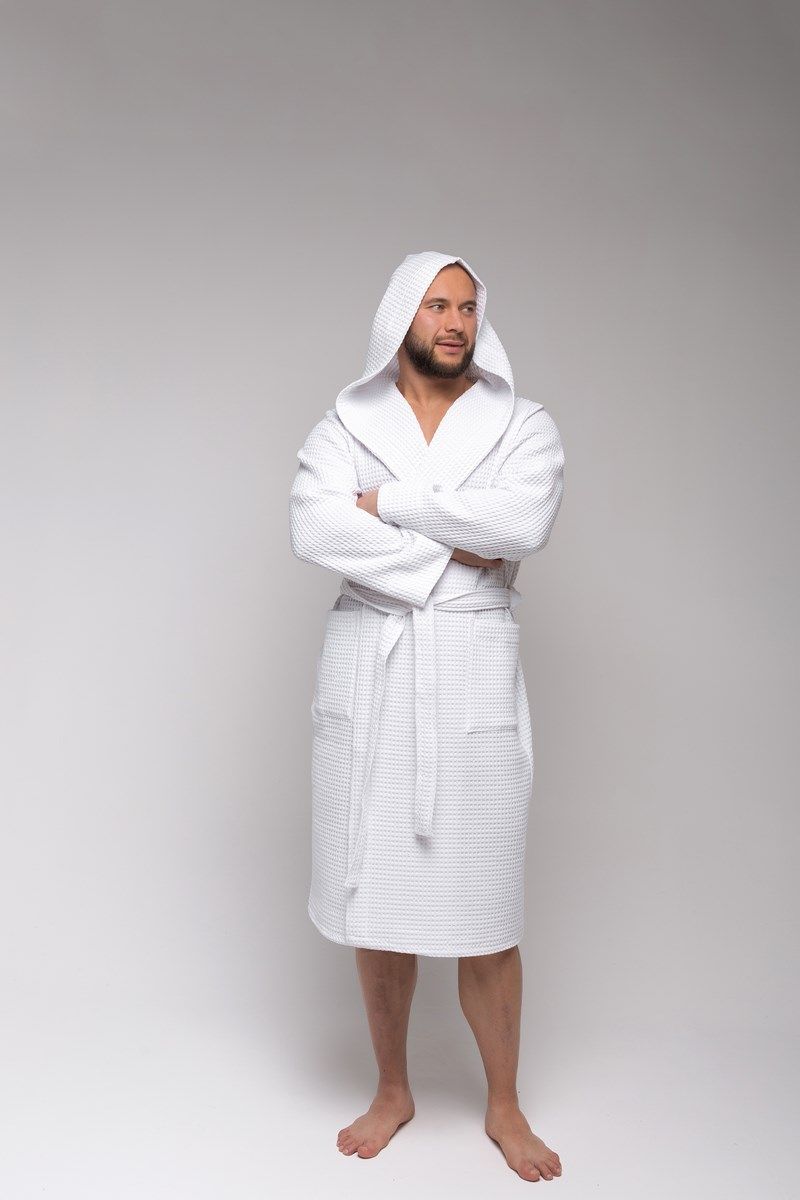 Халат вафельный PandaHug Оrlando белый с капюшоном