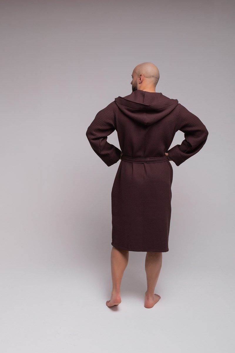 Халат достаточно легкий, а мелкие квадратики вафельной ткани создают воздушную подушку между халатом и кожей, за счет чего сохраняется комфортная температура тела, а после водных процедур кожа быстрее высыхает.