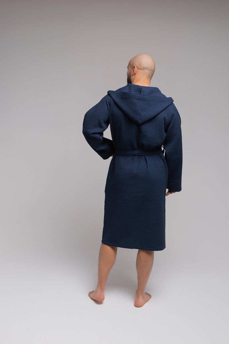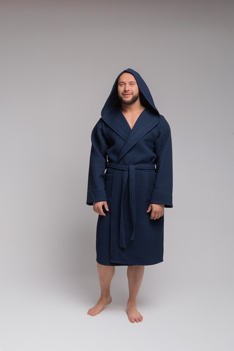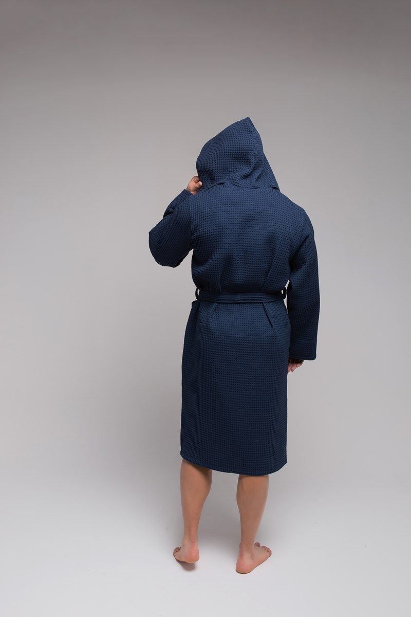 Халат вафельный PandaHug Оrlando синий с капюшоном