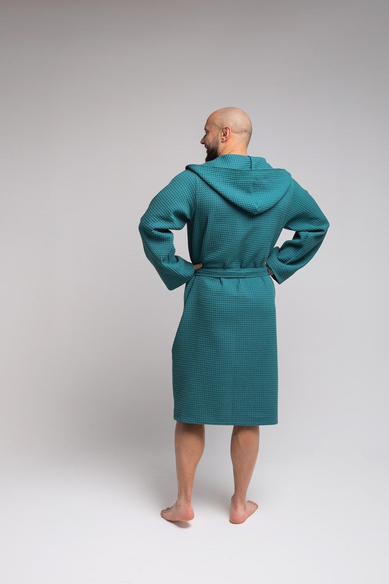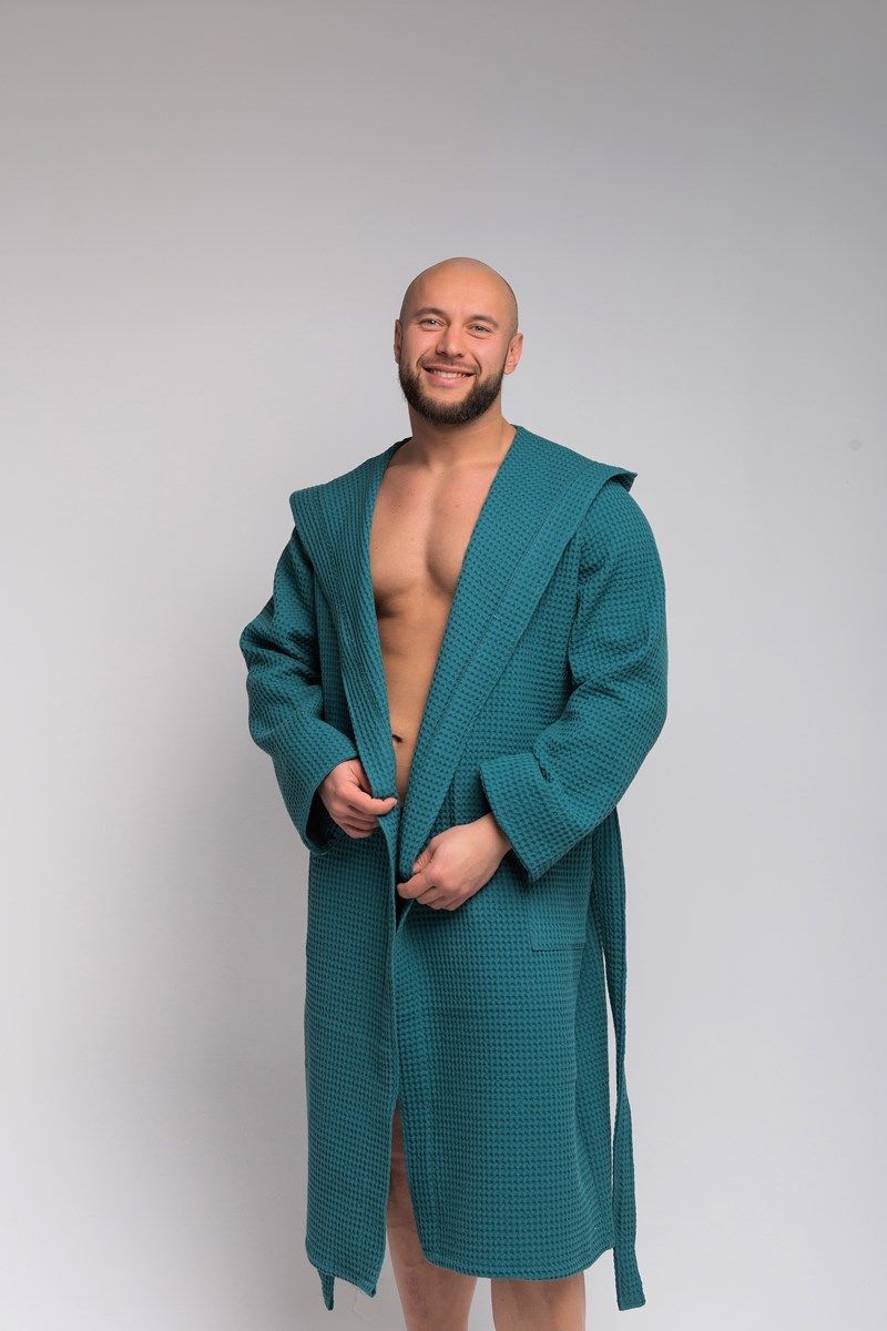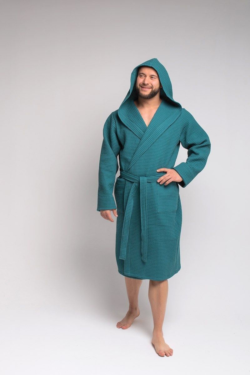Халат достаточно легкий, а мелкие квадратики вафельной ткани создают воздушную подушку между халатом и кожей, за счет чего сохраняется комфортная температура тела, а после водных процедур кожа быстрее высыхает.