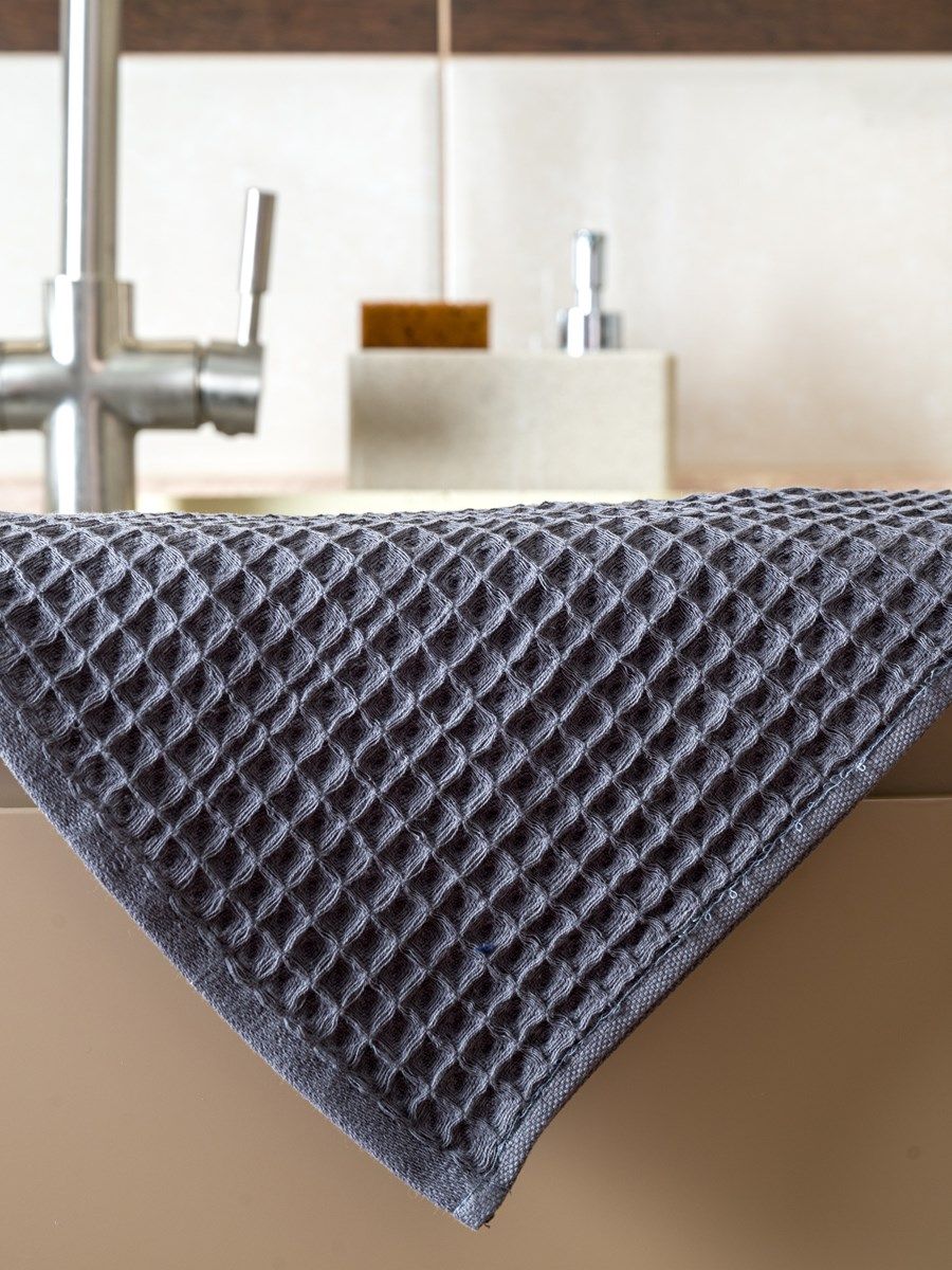 Полотенца изготовлены из вафельной ткани высокого качества с рельефным безворсовым плетением в виде крупной мягкой клетки. Эти полотенца намного толще и пышнее привычных вафельных полотенец. Благодаря особому плетению и крупной клетке ткань получилась мягкой и очень воздушной. При соприкосновении с кожей она не вызывает раздражения или неприятных ощущений. Нежное как облачко, это полотенце идеально подойдет малышам и людям, которые ценят свой комфорт. Вафельное полотно произведено из 100% хлопка на современном  итальянском оборудовании в Республике Узбекистан. Оно обладает высокой прочностью и износостойкостью, что обеспечивает изделиям из него долгий срок службы и практичность в использовании. Даже после многократных стирок изделие не линяет, не деформируется и полностью сохраняет свои свойства.