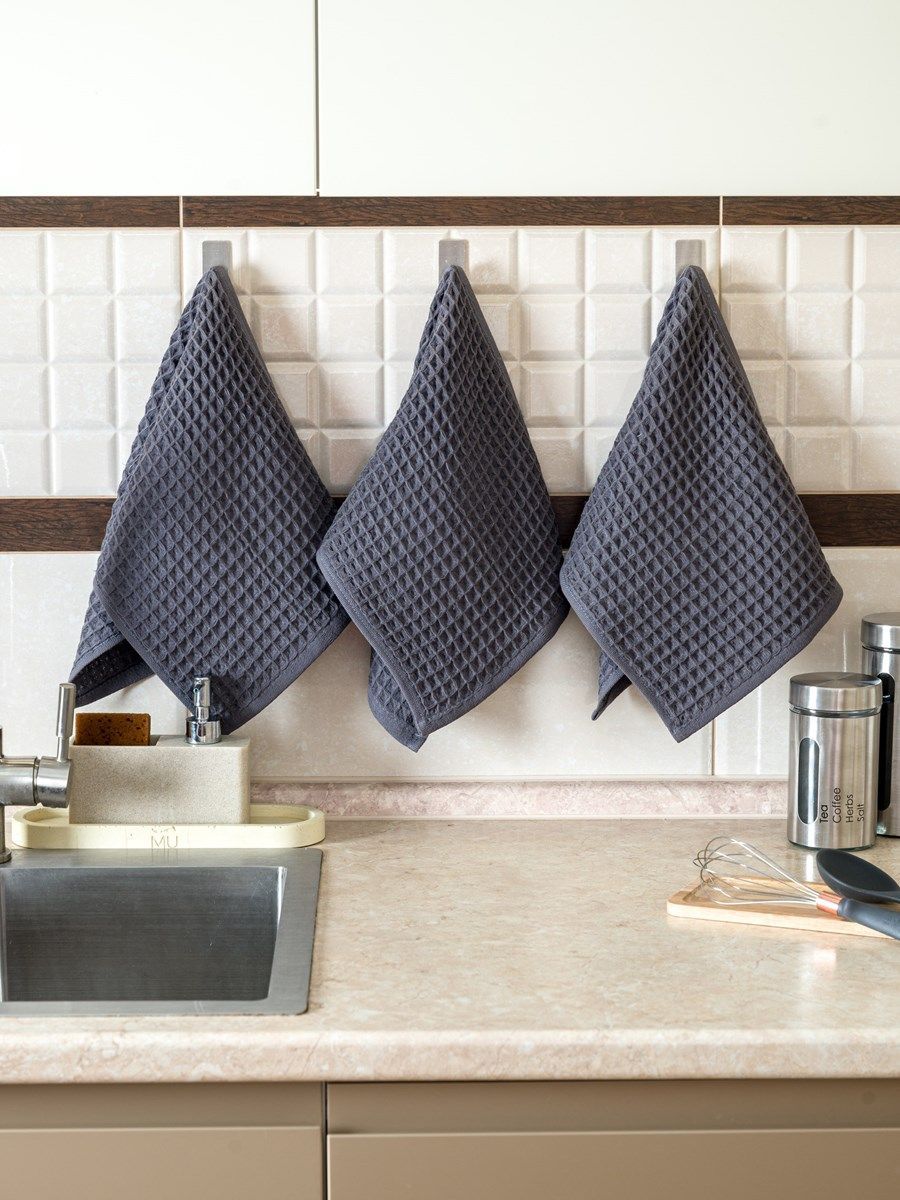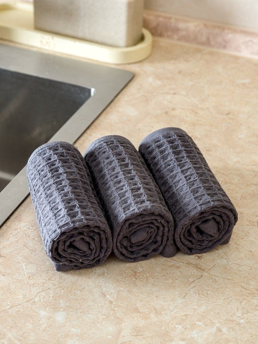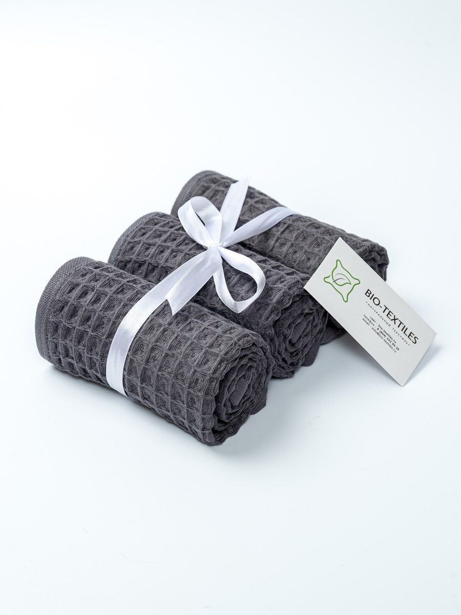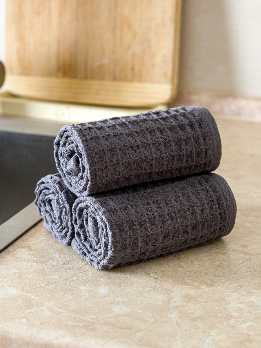 Набор вафельных полотенец 3 шт (30*60) темно-серые