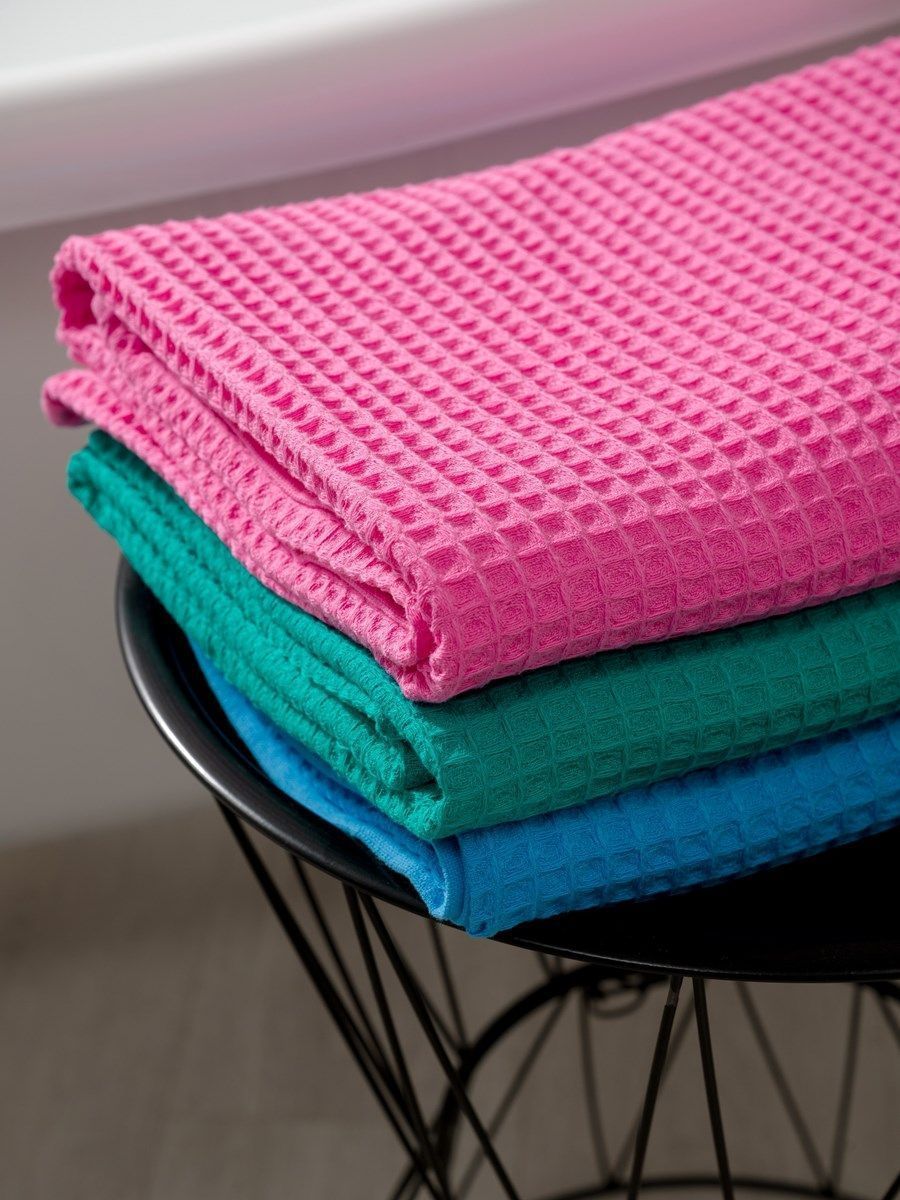 Полотенца изготовлены из вафельной ткани высокого качества с рельефным безворсовым плетением в виде крупной мягкой клетки. Эти полотенца намного толще и пышнее привычных вафельных полотенец.  Благодаря особому плетению и крупной клетке ткань получилась мягкой и очень воздушной. При соприкосновении с кожей она не вызывает раздражения или неприятных ощущений. Нежное как облачко, это полотенце идеально подойдет малышам и людям, которые ценят свой комфорт. Вафельное полотно произведено из 100% хлопка на современном  итальянском оборудовании в Республике Узбекистан. Оно обладает высокой прочностью и износостойкостью, что обеспечивает изделиям из него долгий срок службы и практичность в использовании. Даже после многократных стирок изделие не линяет, не деформируется и полностью сохраняет свои свойства.