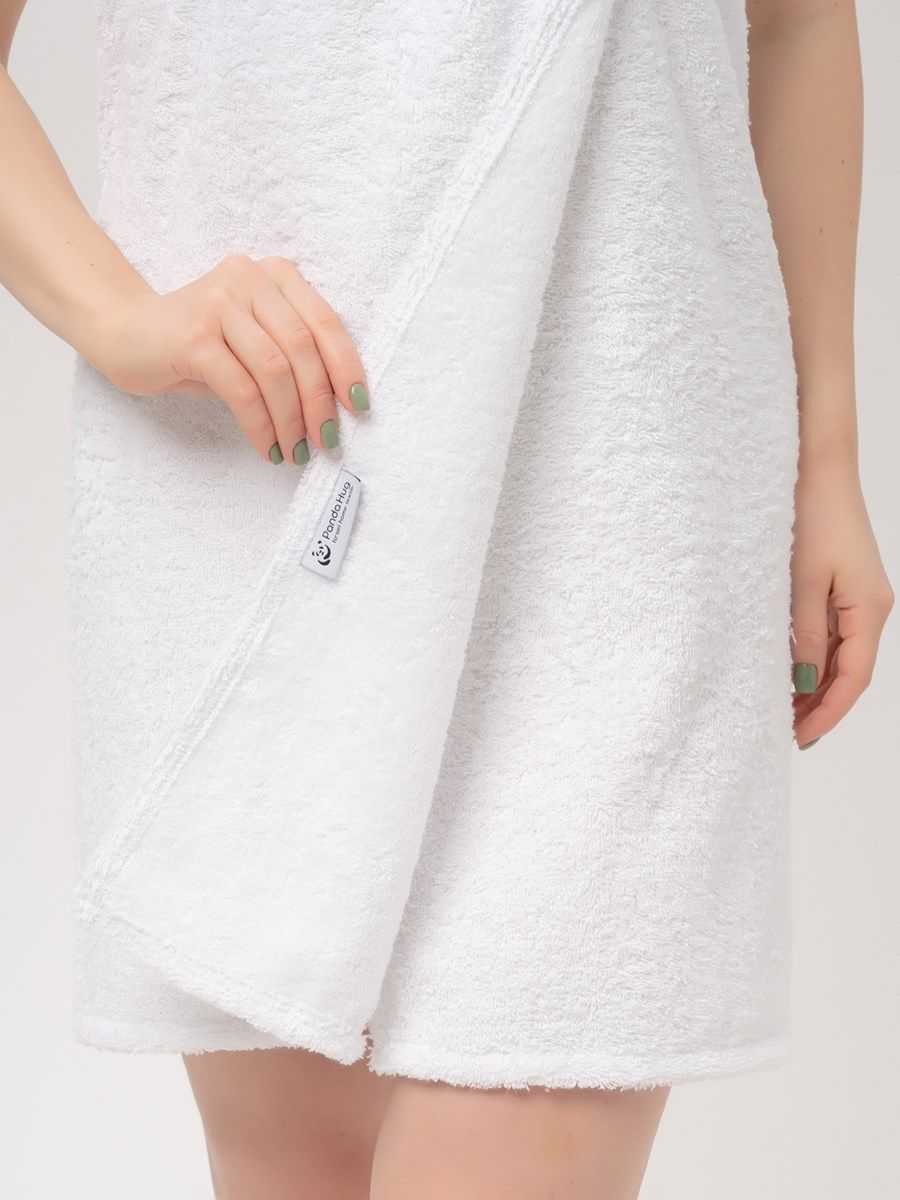 Двусторонняя махра изготовлена из 100% хлопка, плотность – 400 г/м². Полотенце – парео, вошедшее в ваш набор в сауну, несомненно порадует вас. Оно позволяет быстро обернуть тело мягкой тканью с ворсом и надежно зафиксировать липучкой. Парео - это такое женское махровое полотенце, и наборы в сауну с ним являются отличным подарком для любительниц бани, парилок и саун.