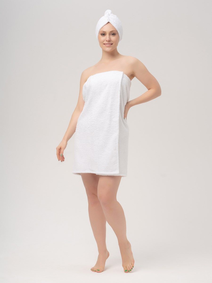 Стандартный комплект для бани может включать в себя также тюрбан для сушки волос, полотенца, варежку, но самым важным и нужным является полотенце-парео. Двустороння махра отлично впитывает влагу, не линяет, согревает кожу, деликатно высушивая её после водных процедур. К чалме, либо тюрбану для сушки волос и полотенцу добавьте женское парео - соберите чудесный и практичный банный набор!