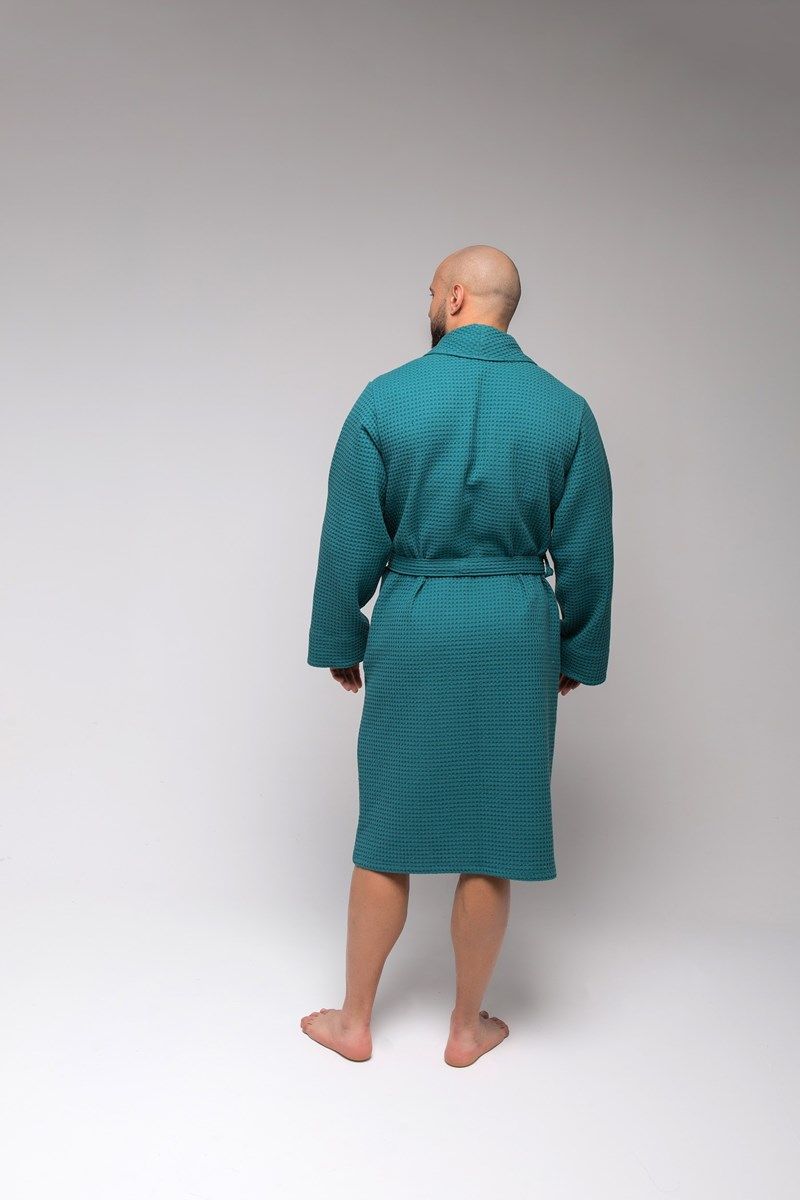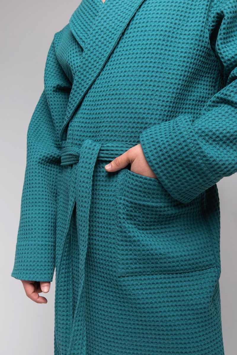 Халат достаточно легкий, а мелкие квадратики вафельной ткани создают воздушную подушку между халатом и кожей, за счет чего сохраняется комфортная температура тела, а после водных процедур кожа быстрее высыхает.