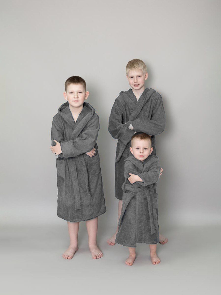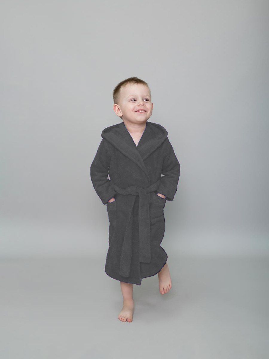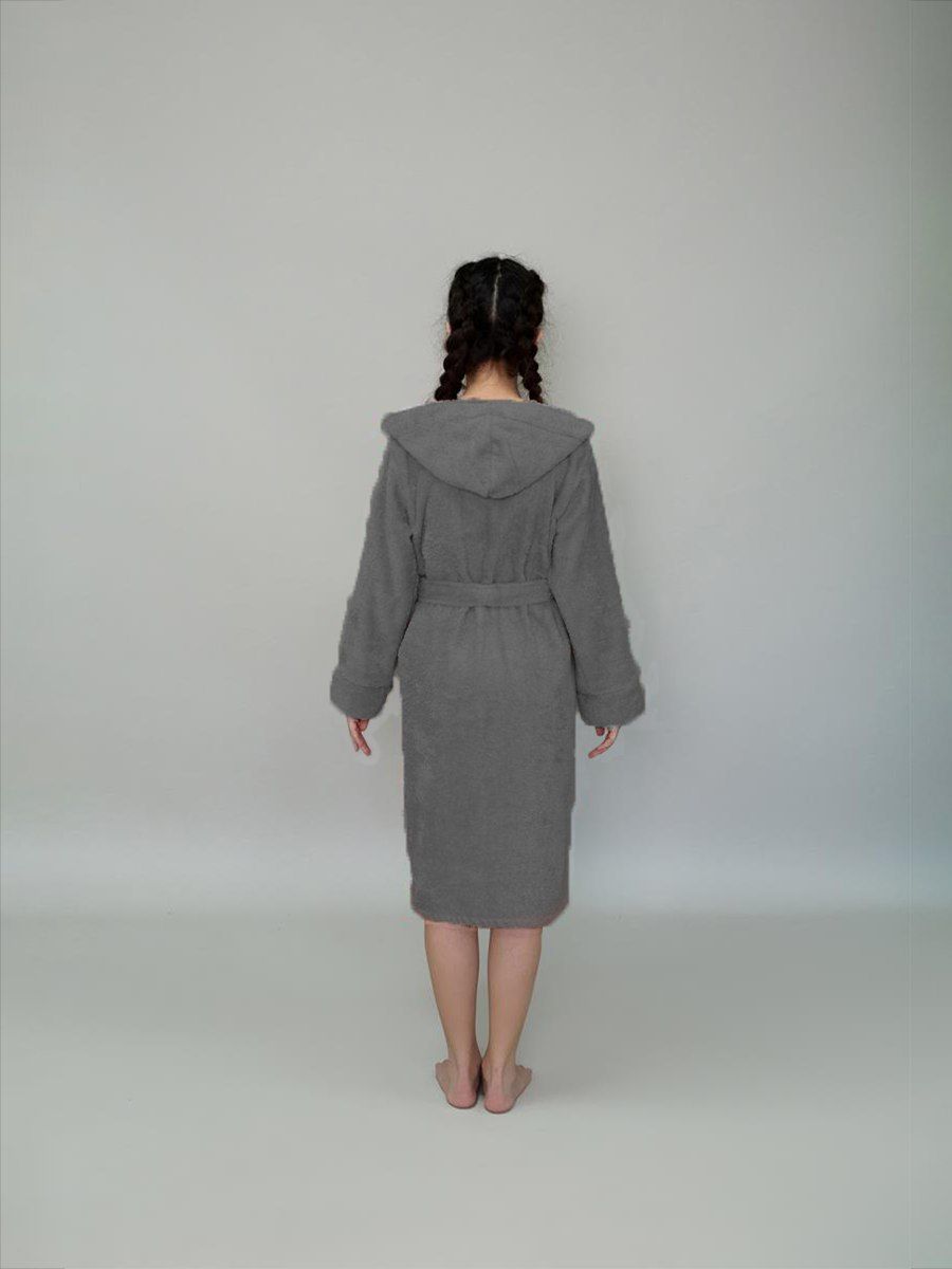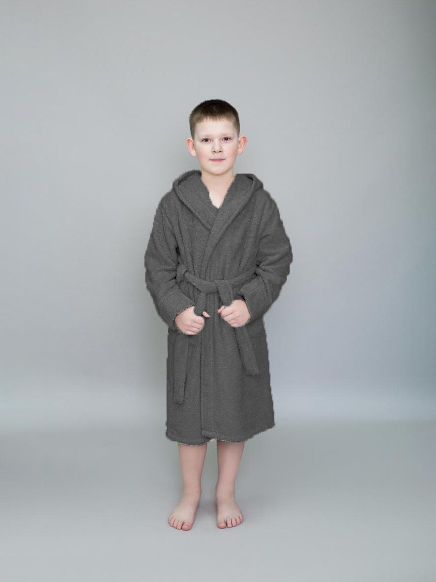 Халат махровый детский с капюшоном темно-серый
