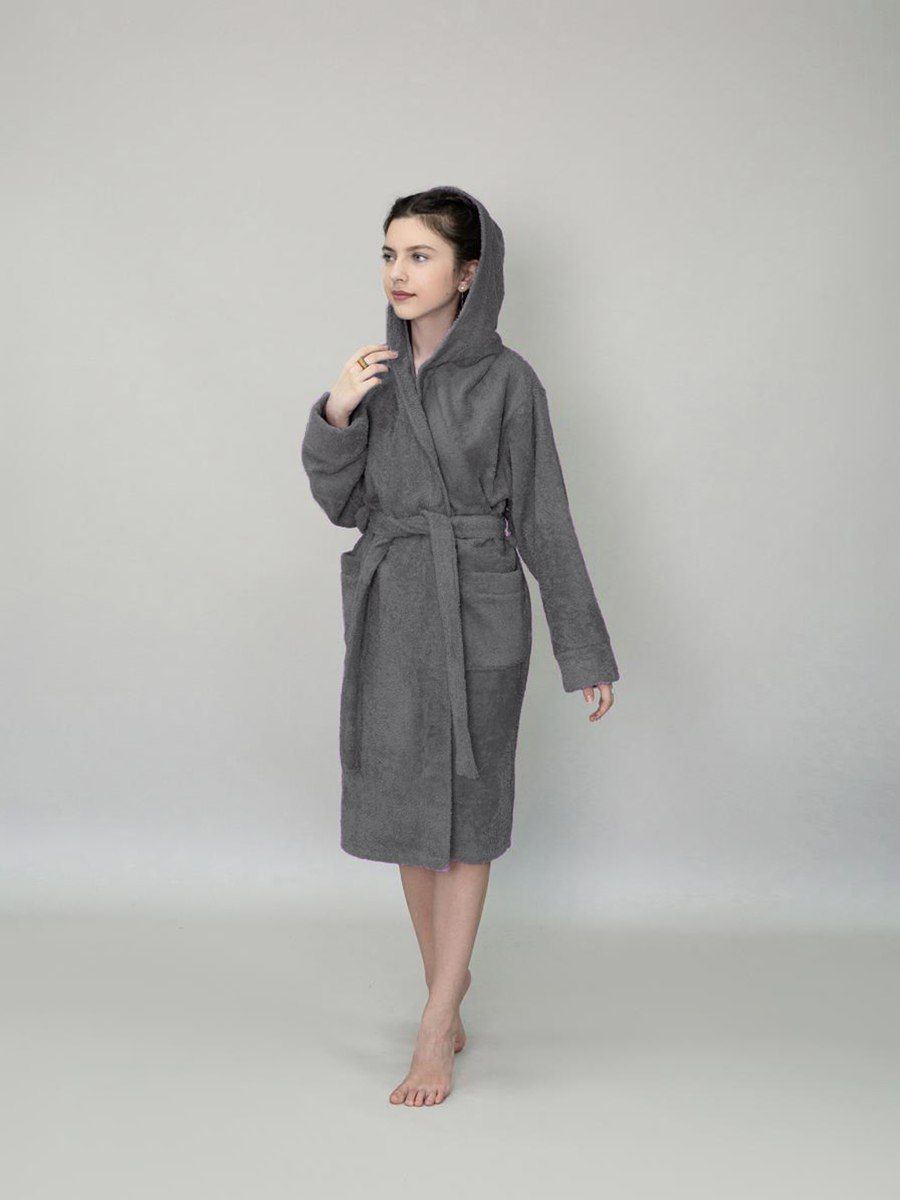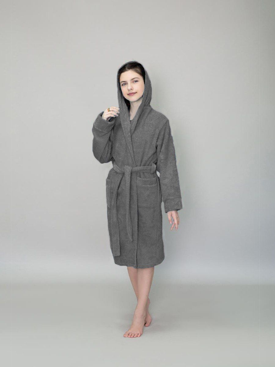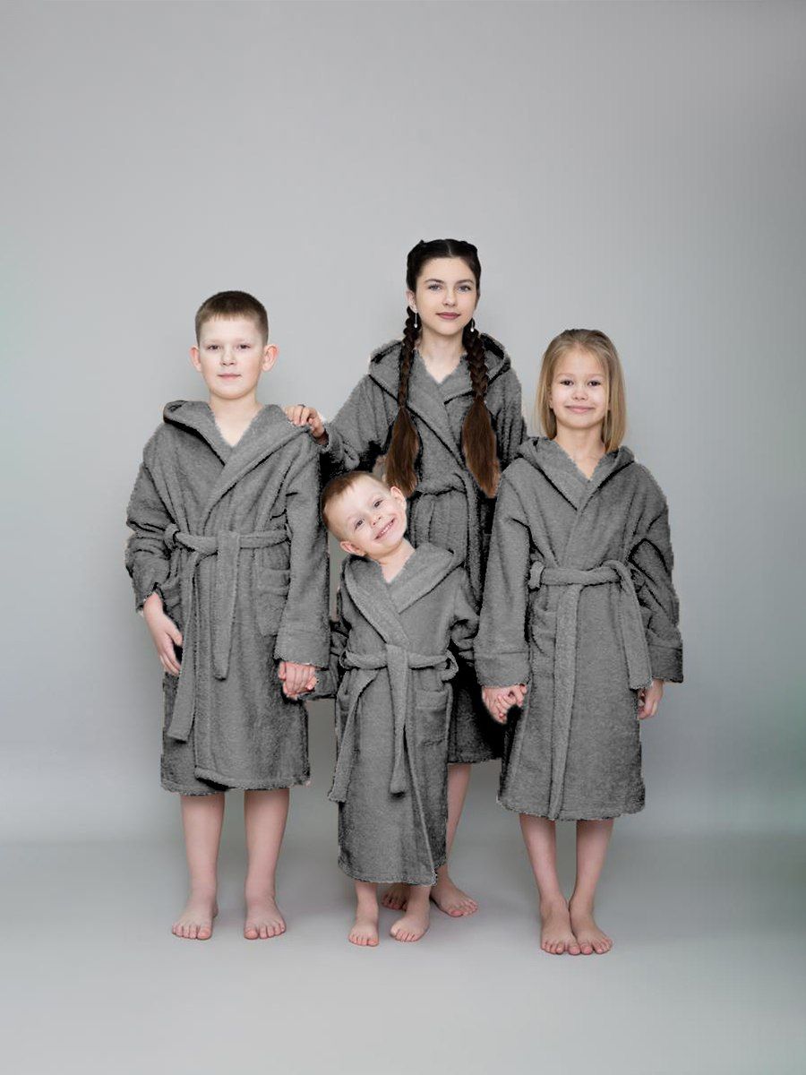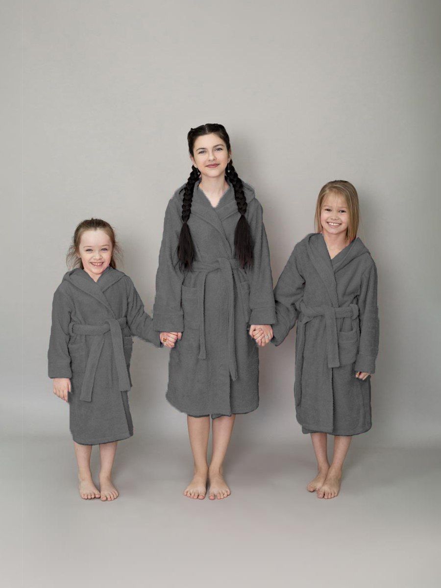 Халат махровый детский с капюшоном темно-серый