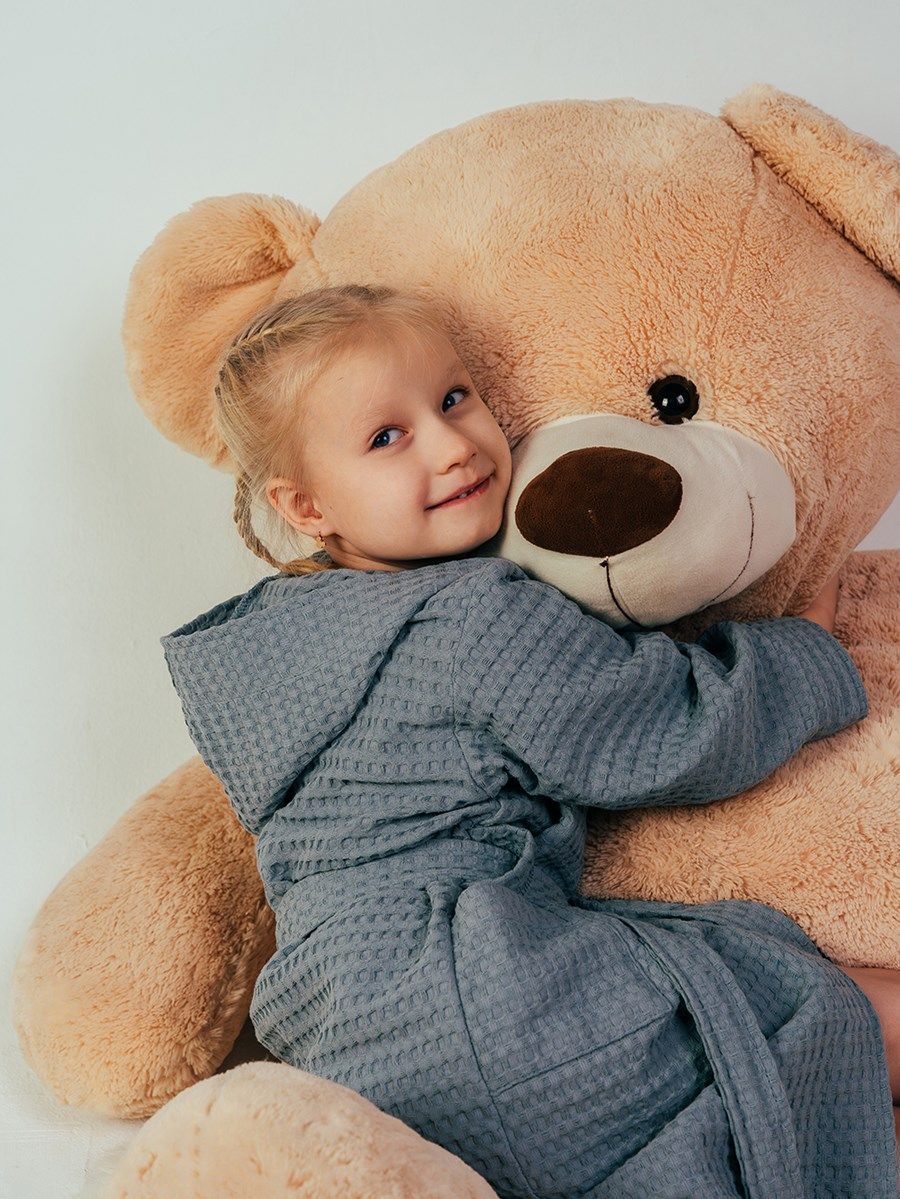 Вафельный халатик для детей, выполненный из натурального материала – 100% хлопка с карманом, удобен и универсален.  Ткань не вызывает аллергии и раздражения кожи, прекрасно пропускает воздух,  быстро впитывает влагу и так же мгновенно сохнет.   Форма халата с запахом и широким поясом позволит использовать его долгое время, несмотря на быстрый рост ребенка. Поэтому для домашнего ухода за детьми вафельный халат является одной из самых удобных и практичных вещей.   Халат из вафельной ткани легкий и практичный, благодаря натуральному составу ткани сохраняется комфортная температура тела,  идеальная для жаркого лета.   После любых водных процедур, вафельный халатик создаст приятную прохладу и быстро высушит тело, он свободный и приятный к детской коже.