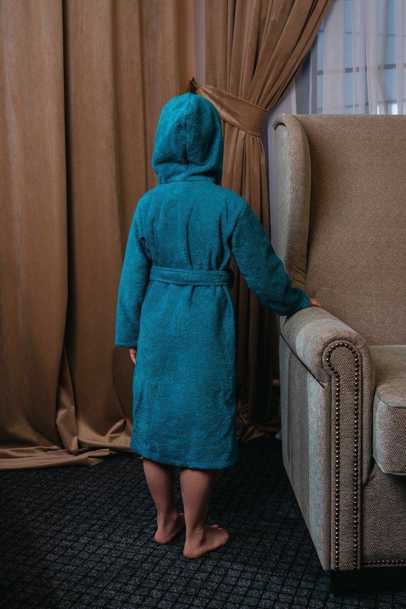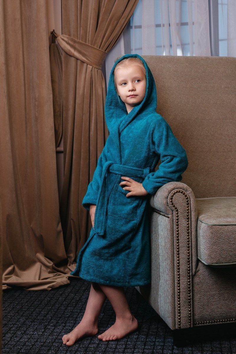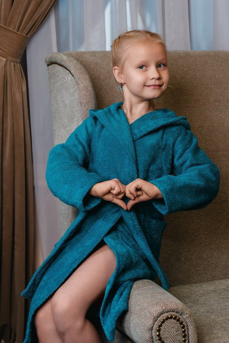 Халат махровый детский с капюшоном морская волна