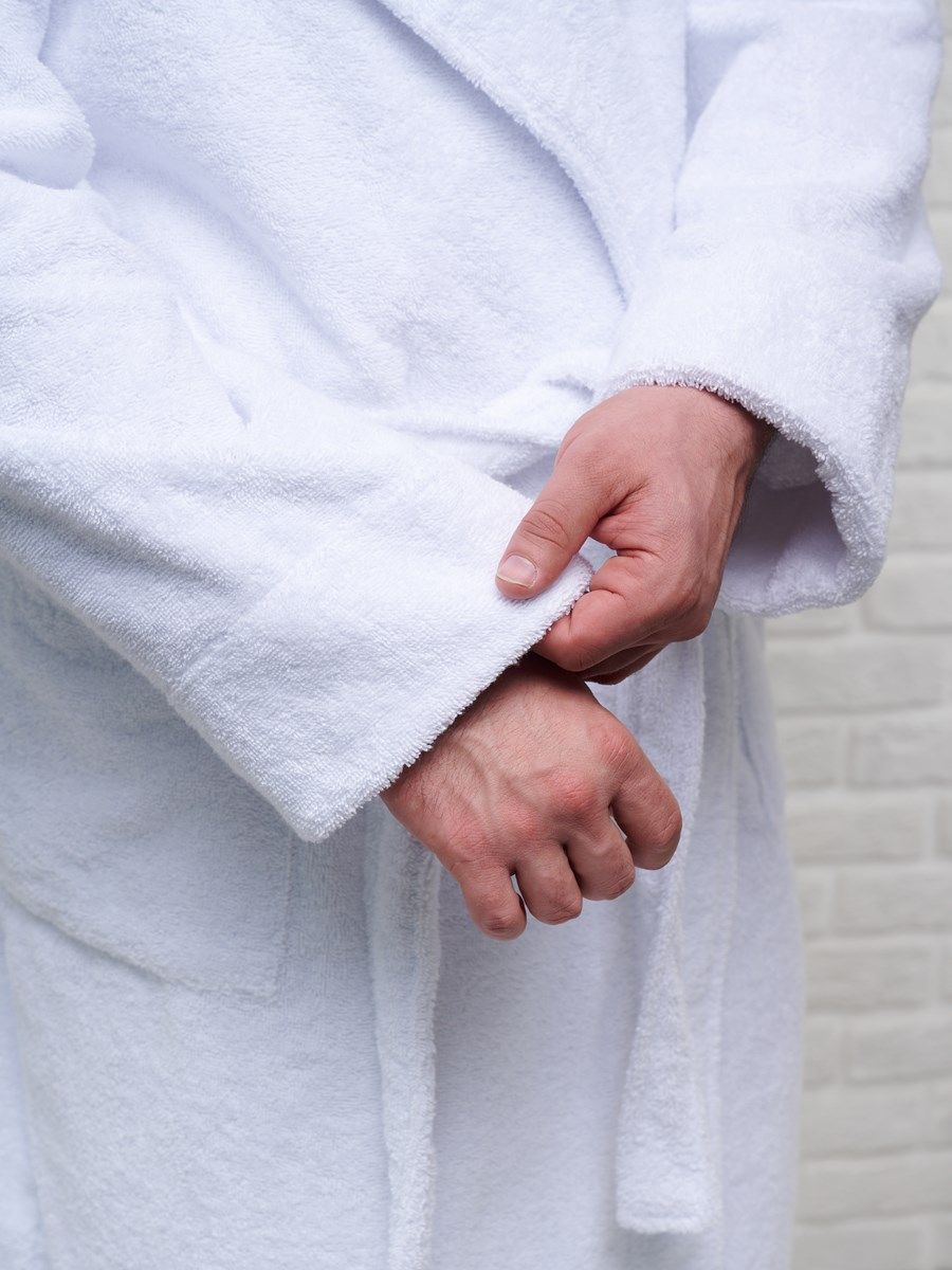 При выборе нужно также учитывать, что после стирки халат может дать небольшую усадку, а также халат должен свободно прилегать к телу, поэтому лучше выбрать изделие на размер больше.
